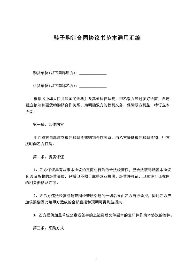 根据《中华人民共和国民法典》及其他法律法规,甲乙双方经过友好协商,自愿建立粮油和副货物购销合作关系,为明确双方的权利义务,保障双方利益,特订立本协议: