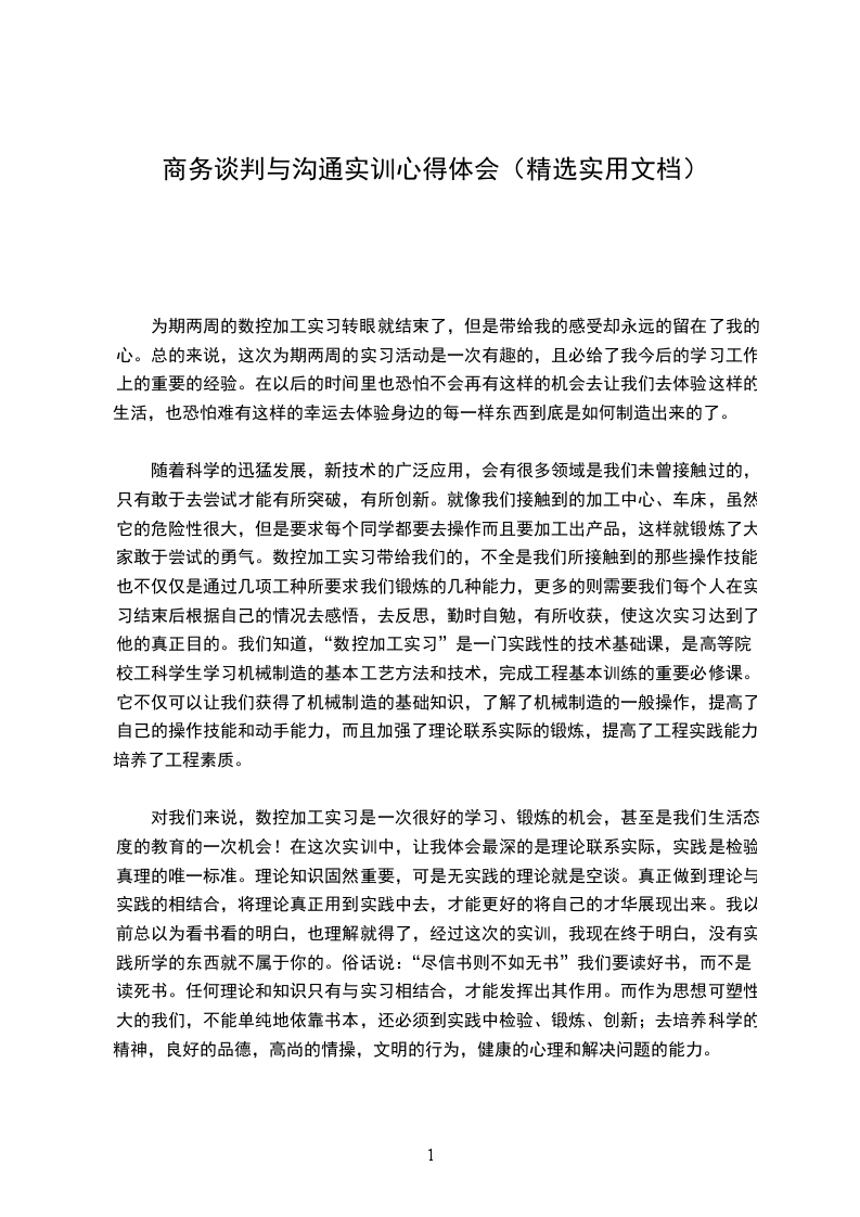 总之,本次数控实训确实比以前提高了水平,尤其在实际操作方面,遗憾的是时间有些短。通过本次实训我也发现了自己的不足,主要是操作水平以及实践经验方面有欠缺。两周的数控实训带给我们的,不全是我们所接触到的那些操作技能,也不仅仅是通过几项工种所要求我们锻炼的几种能力,更多的则需要我们每个人在实训结束后根据自己的情况去感悟,去反思,勤时自勉,有所收获,使这次习实达到了它的真正目的。