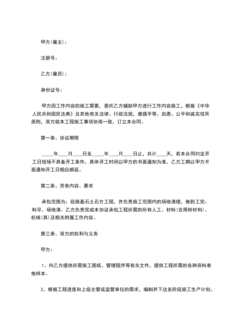 第二条、劳务内容、要求