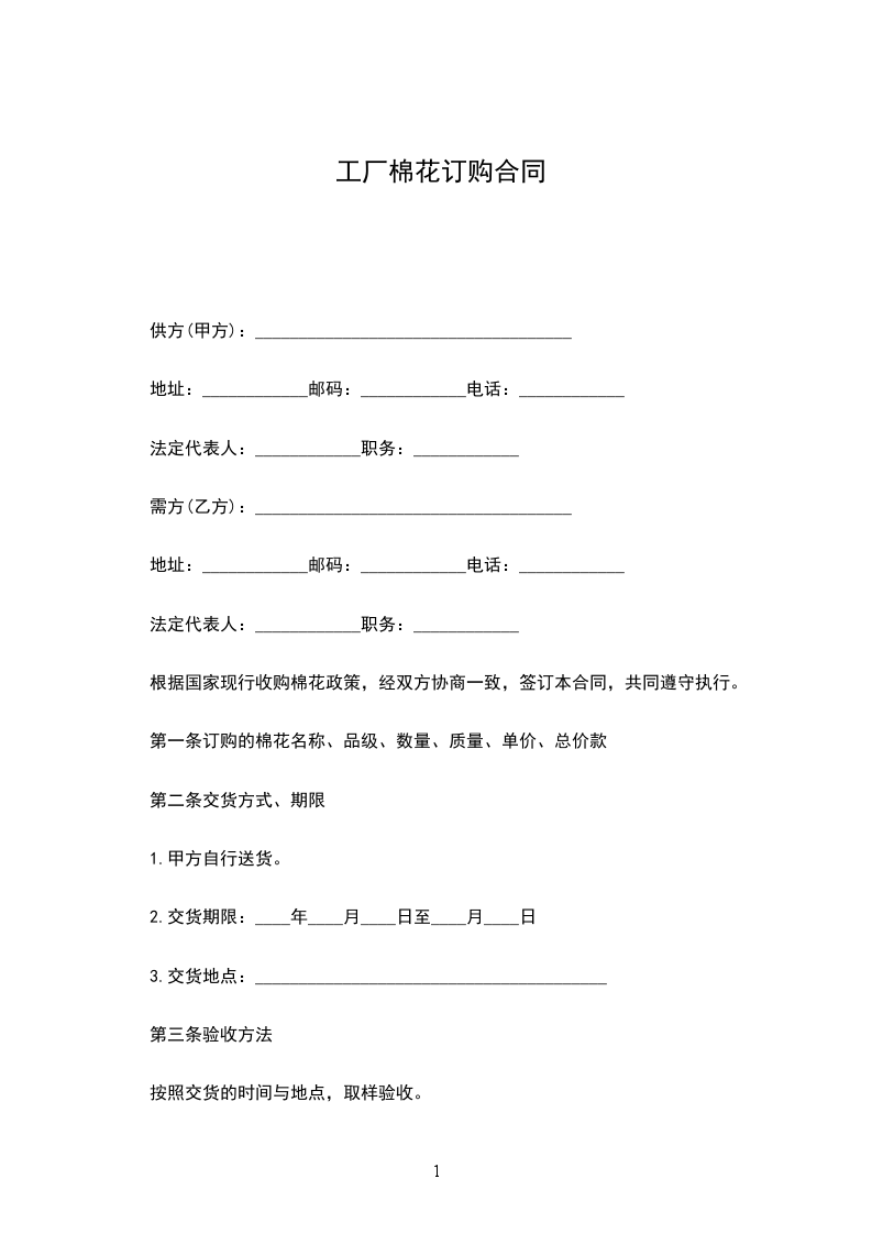 根据国家现行收购棉花政策,经双方协商一致,签订本合同,共同遵守执行。