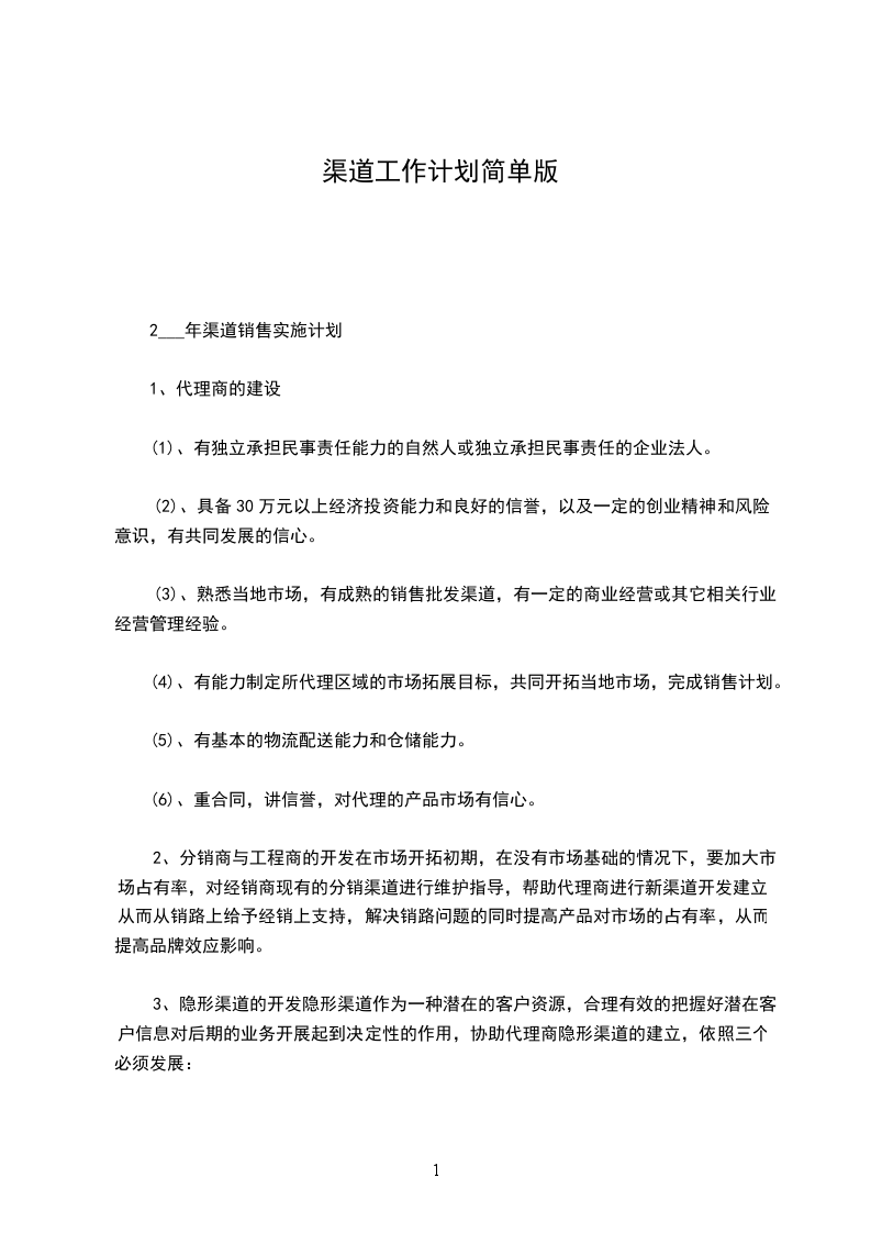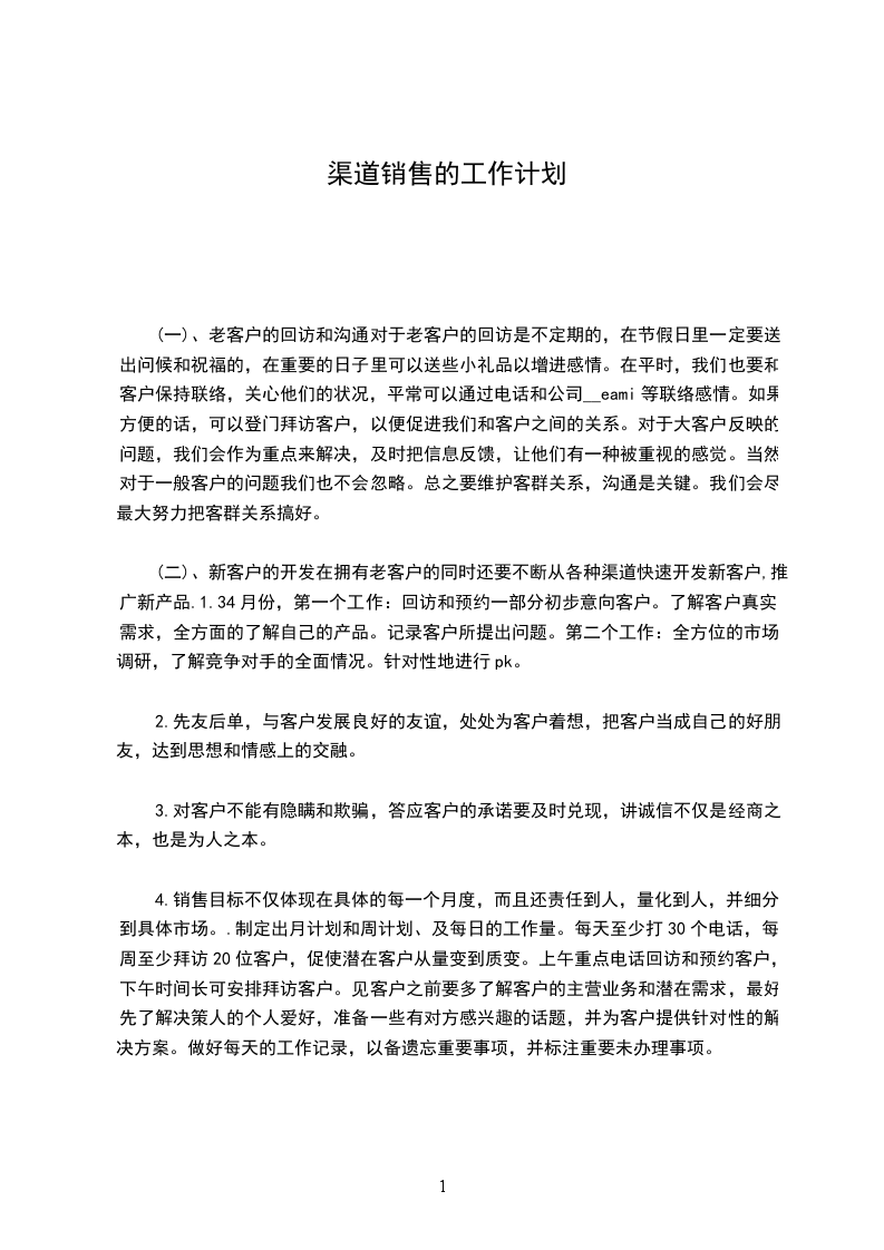 根据公司___年___地区的市场开拓总结,在现有市场状况下,为确保市场开拓的顺利进行,完成网络渠道的建设工作,现将公司___年度的渠道策略做出以下工作计划: