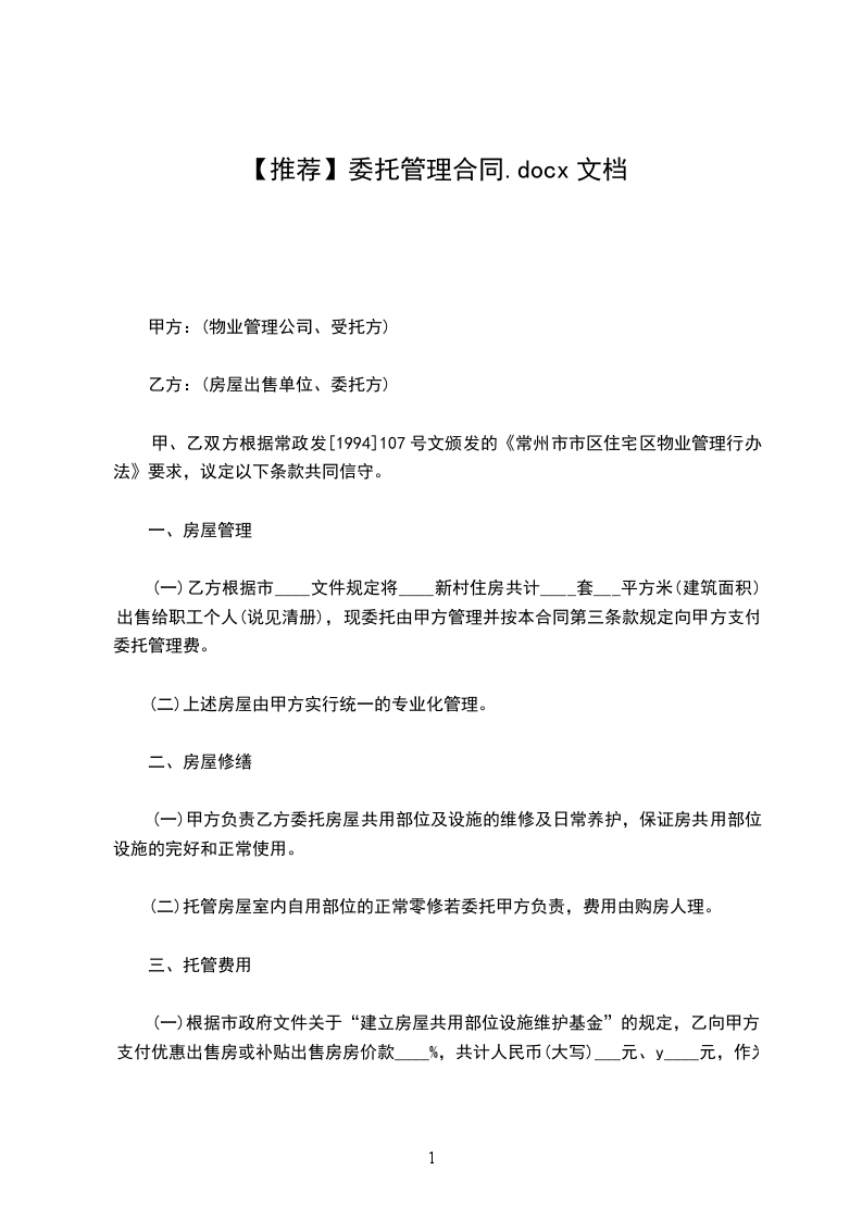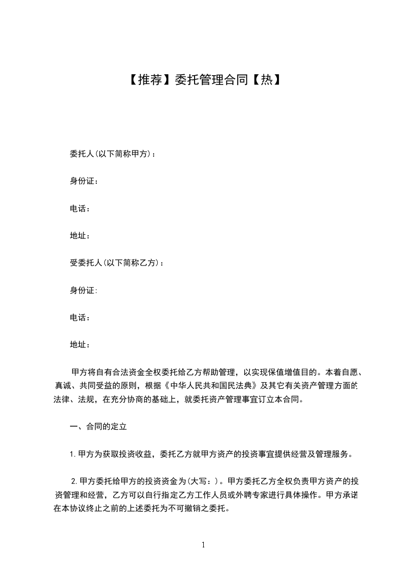 第七条委托管理、承包期限及酬金支付