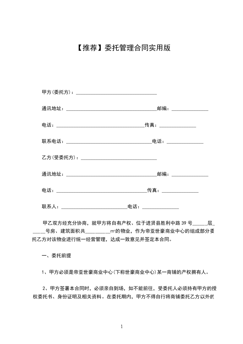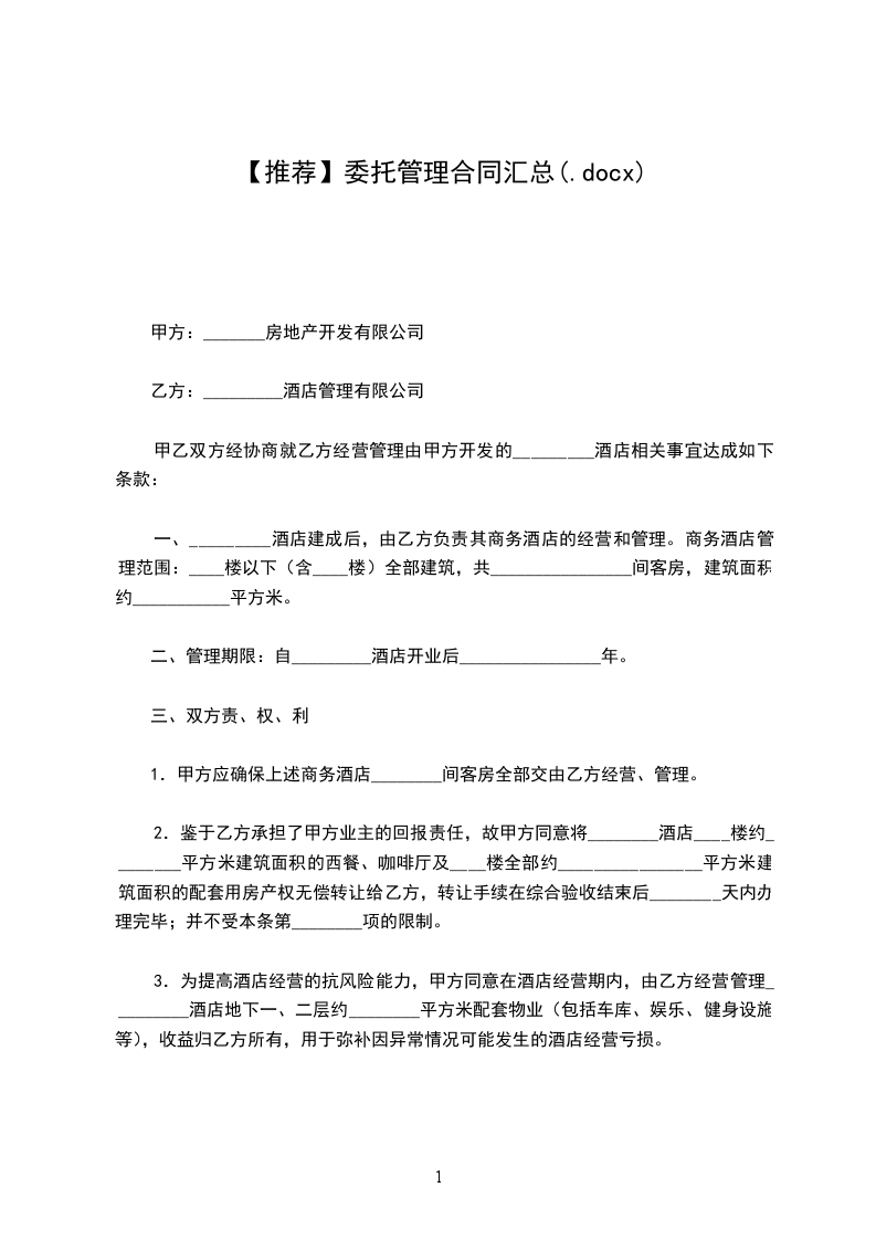 甲方与乙方经过认真协商,就__饭店委托经营管理事宜达成如下协议: