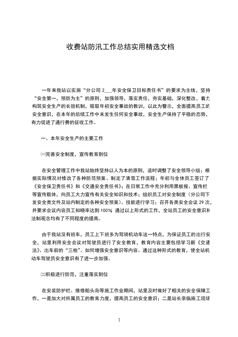 一年来我站以实施“分公司2___年安全保卫目标责任书”的要求为主线,坚持“安全第一,预防为主”的原则,加强领导,落实责任,夯实基础,深化整改,着力构筑安全生产的长效机制,吸取年初安全事故的教训,以此为警示,全面提高员工的安全意识,在本年的后续工作中未发生任何安全事故,安全生产保持了平稳的态势,有力促进了通行费的征收工作。