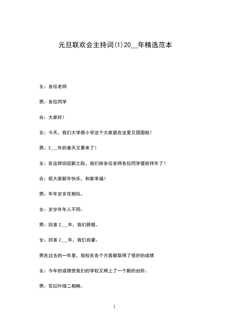 女:站在岁首我们翘首企盼,未来的一年我们有更多的展望,更多的梦想,有更多的高峰等着我们奋力登攀!