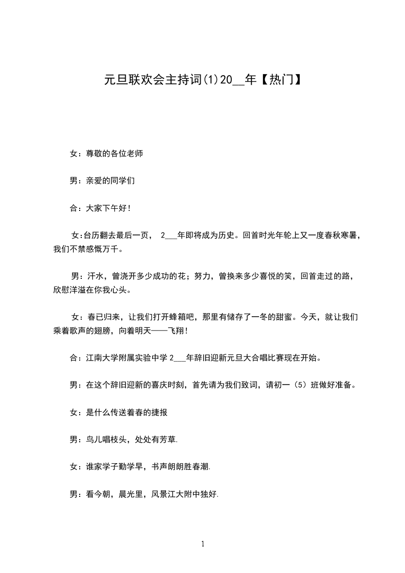 合:让我们张开双臂,拥抱2___年元旦,热情欢迎这位如约而至的客人。
