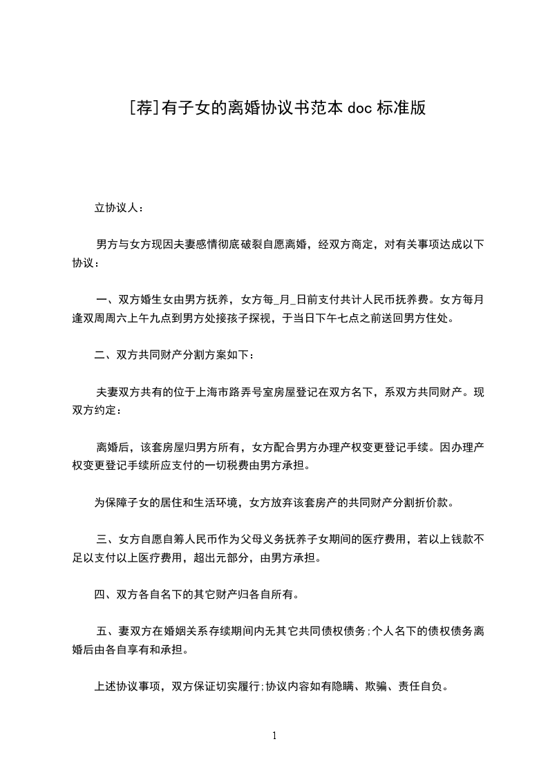 (本协议一式三份,当事人双方各执一份,交婚姻登记机关存档备案一份)