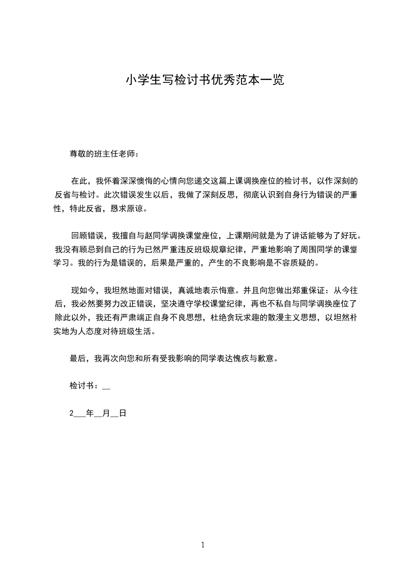 在此,我怀着深深懊悔的心情向您递交这篇上课调换座位的检讨书,以作深刻的反省与检讨。此次错误发生以后,我做了深刻反思,彻底认识到自身行为错误的严重性,特此反省,恳求原谅。