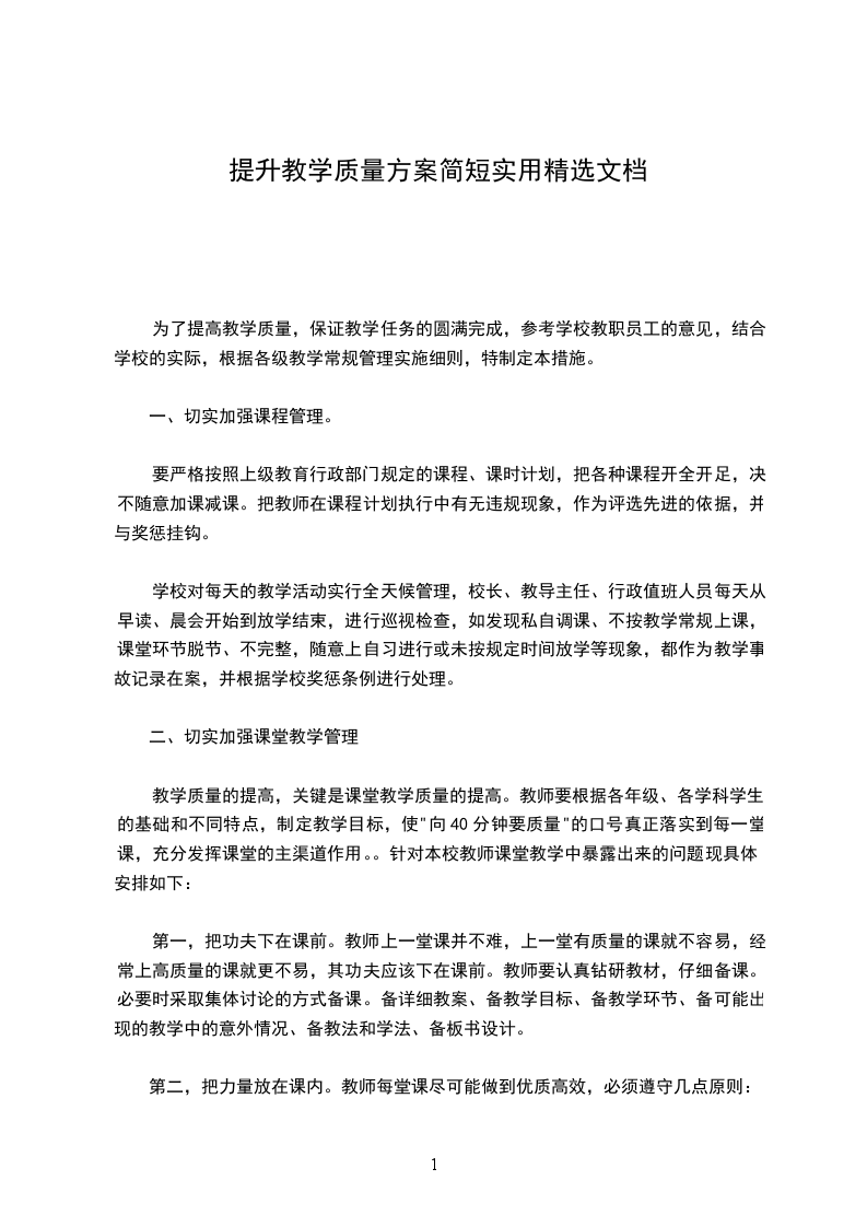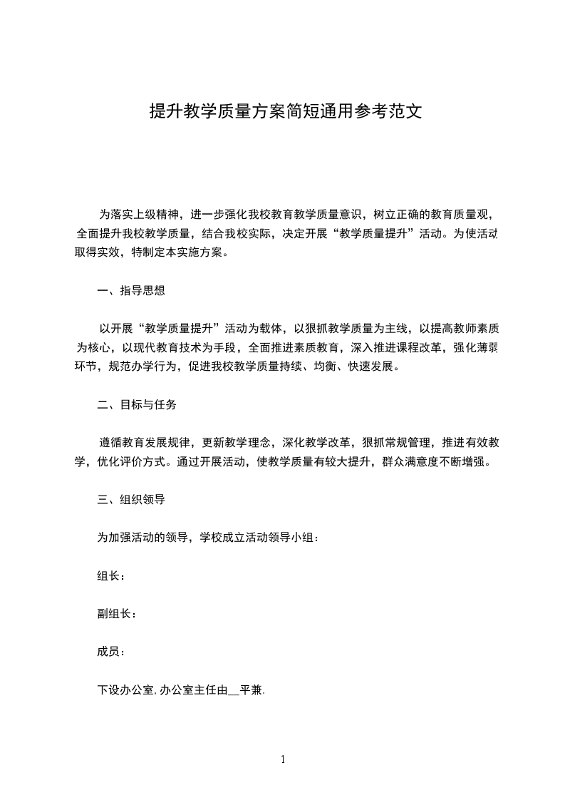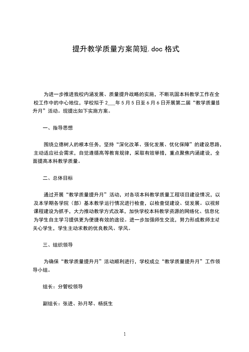 为落实上级精神,进一步强化我校教育教学质量意识,树立正确的教育质量观,全面提升我校教学质量,结合我校实际,决定开展“教学质量提升”活动。为使活动取得实效,特制定本实施方案。