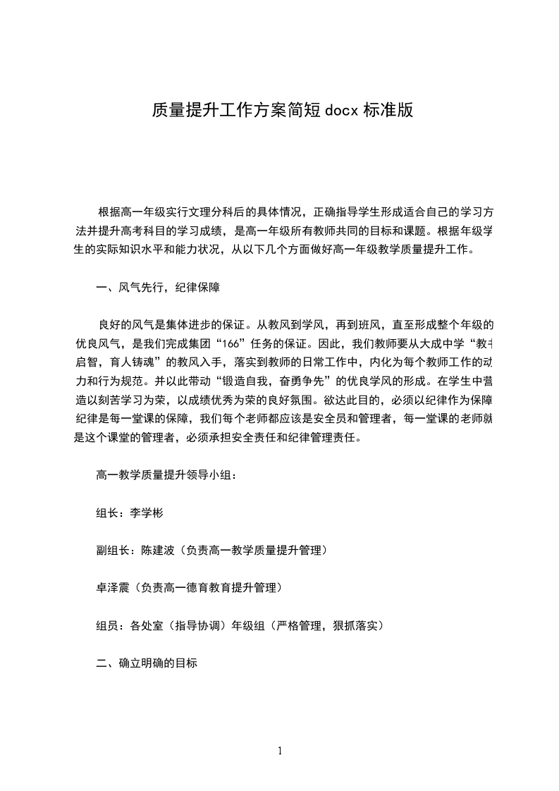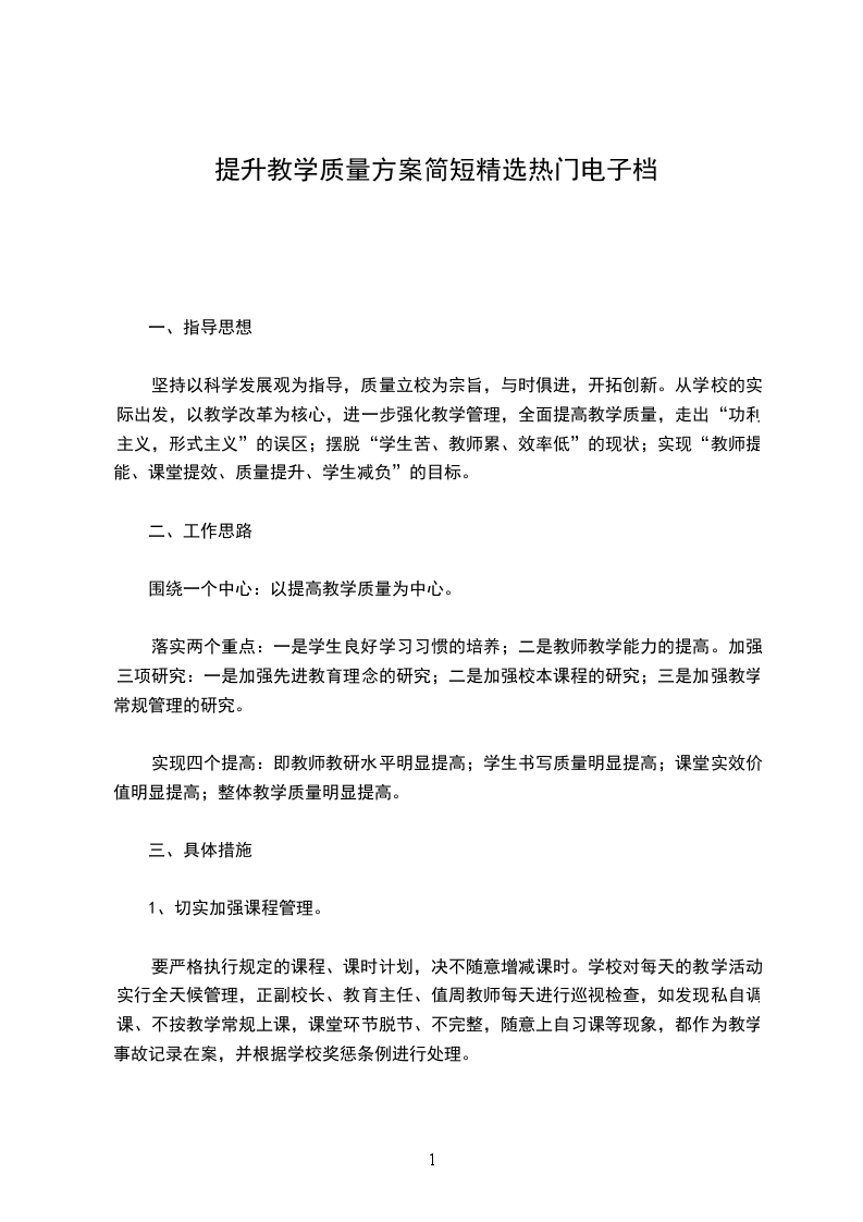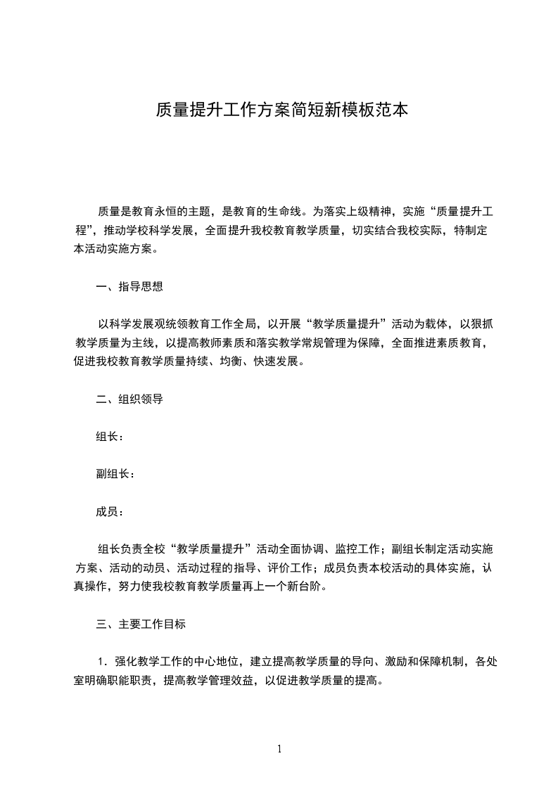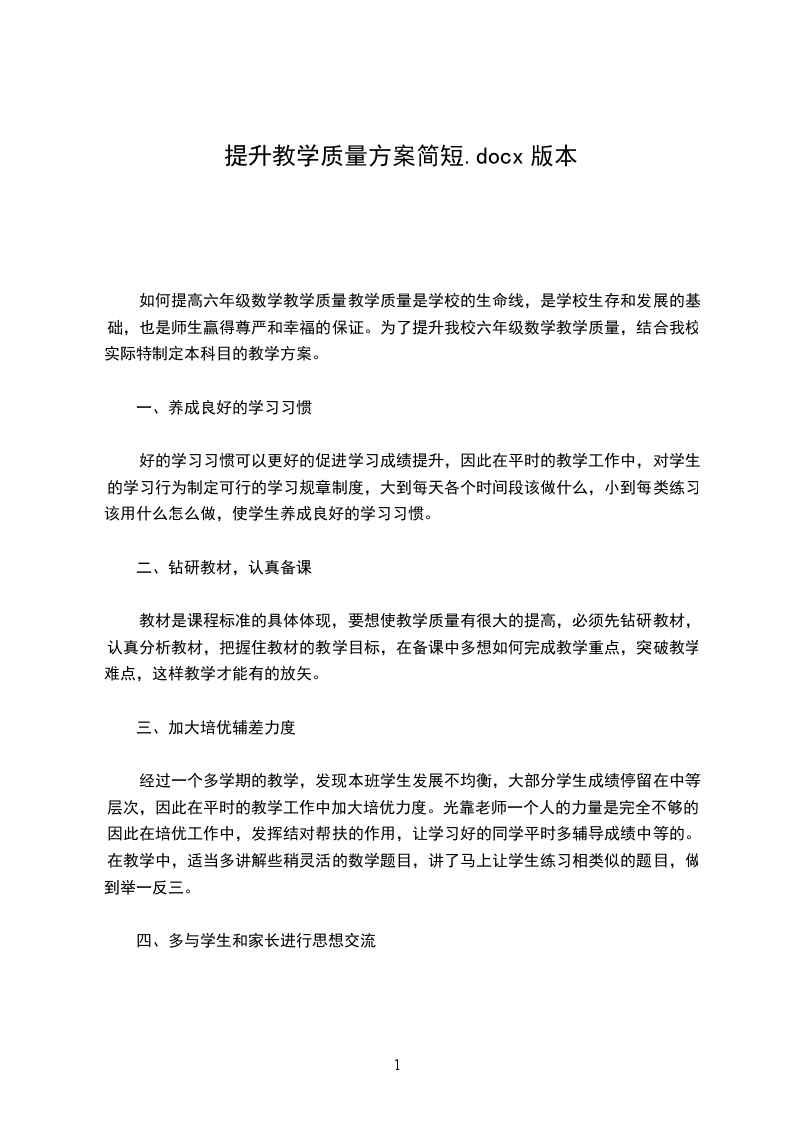 为落实上级精神,进一步强化我校教育教学质量意识,树立正确的教育质量观,全面提升我校教学质量,结合我校实际,决定开展“教学质量提升”活动。为使活动取得实效,特制定本实施方案。