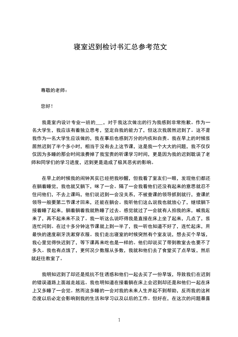 我是室内设计专业一班的___,对于我这次做出的行为我感到非常抱歉。作为一名大学生,我应该有着独立思考,坚定自我的能力了,但这次我居然迟到了。这不是我作为一名大学生应该做的,我在事后也感到万分的内疚和自责。我在早上的时候我居然迟到了半个多小时,相当于没有去上这节课,这是我一个大大的问题,我不仅仅仅因为多睡的那会时间浪费掉了我宝贵的听课学习时间,更是因为我的迟到耽误了老师和同学们的学习进度,迟到更是造成了极其恶劣的影响。