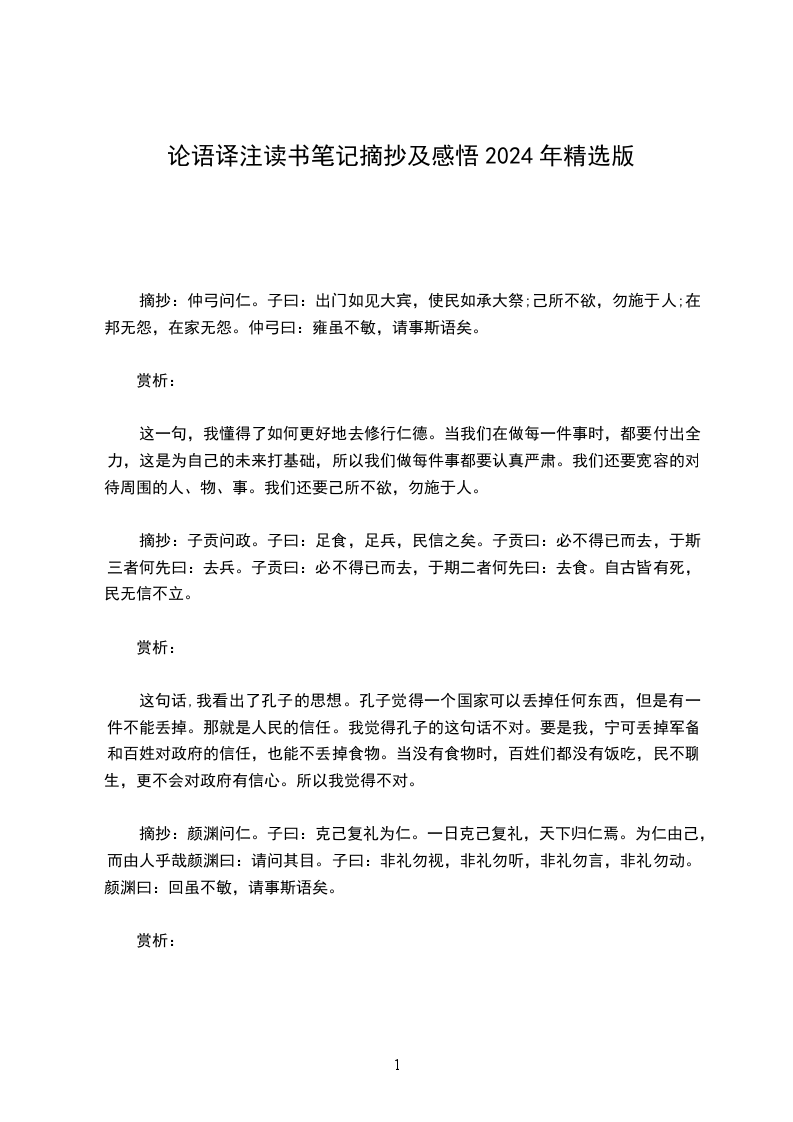 摘抄:仲弓问仁。子曰:出门如见大宾,使民如承大祭;己所不欲,勿施于人;在邦无怨,在家无怨。仲弓曰:雍虽不敏,请事斯语矣。