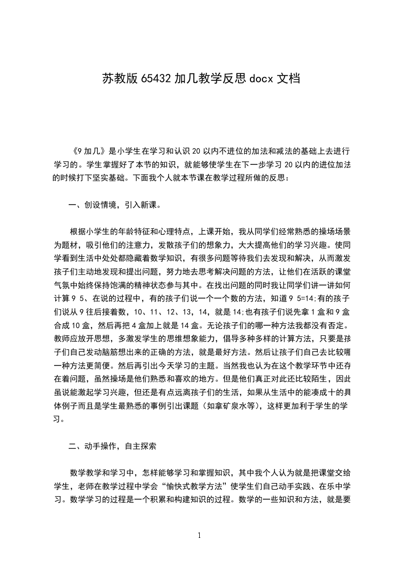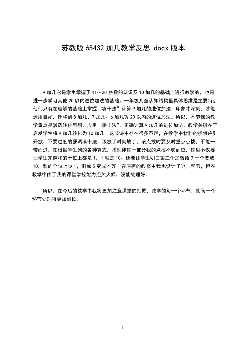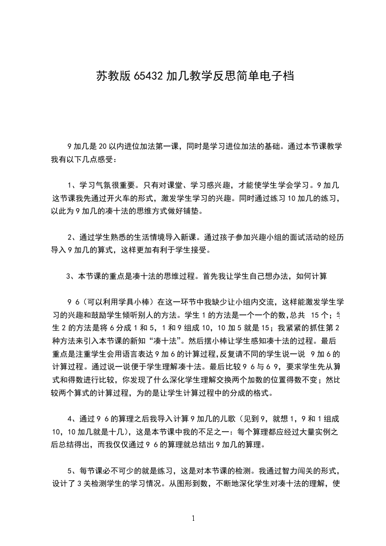 9加几它是学生掌握了11~20各数的认识及10加几的基础上进行教学的,也是进一步学习其他20以内进位加法的基础。一年级儿童认知结构里具体思维是主要特点,他们只有在理解的基础上掌握“凑十法”计算9加几的进位加法,印象才深刻,才能运用自如,迁移到8加几、7加几、6加几等20以内的进位加法。所以,本节课的教学重点是渗透转化思想,应用“凑十法”,正确计算9加几的进位加法,教学关键在于启发学生将9加几转化为10加几。这节课中存在很多不足,在教学中材料的提供应更开放,不要过度的强调凑十法,该放手时就放手,该点拨时要及时重点点拨,不能一带而过。在根据学生列的各种算式,找规律这一部分我的点拨不够到位,这里不仅要让学生知道和的十位上都是1,1就是10、还要让学生明白第二个加数给9一个变成10,和的个位上少1,例如5变成4等。在原有的教案中我也设计了这一环节,但在教学中由于我的课堂掌控能力还欠火候,没能处理好。