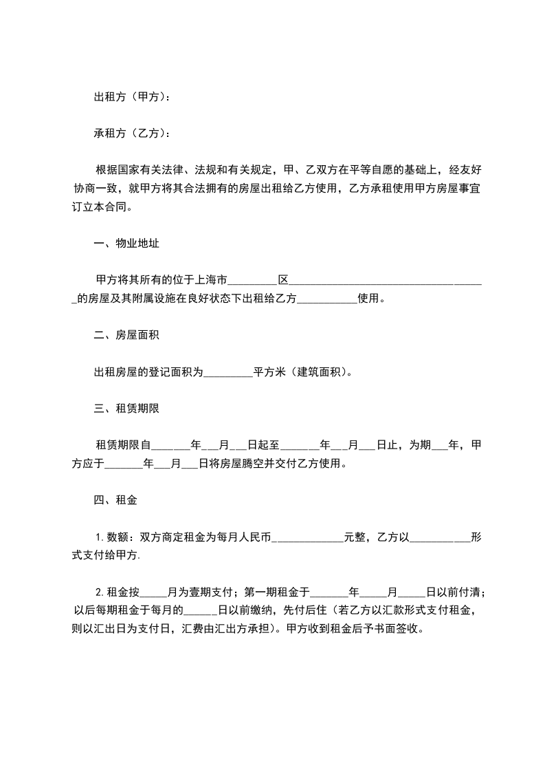 甲方将其所有的位于上海市_________区____________________________________的房屋及其附属设施在良好状态下出租给乙方___________使用。
