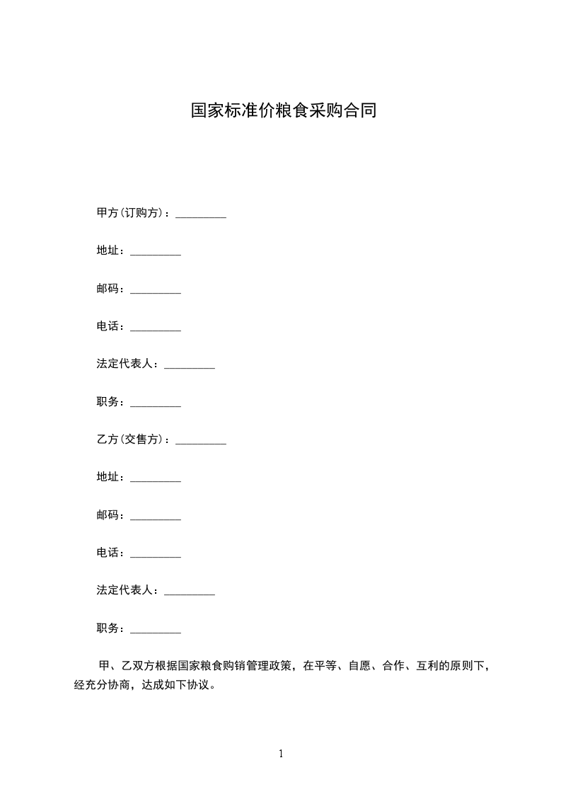 甲、乙双方根据国家粮食购销管理政策,在平等、自愿、合作、互利的原则下,经充分协商,达成如下协议。