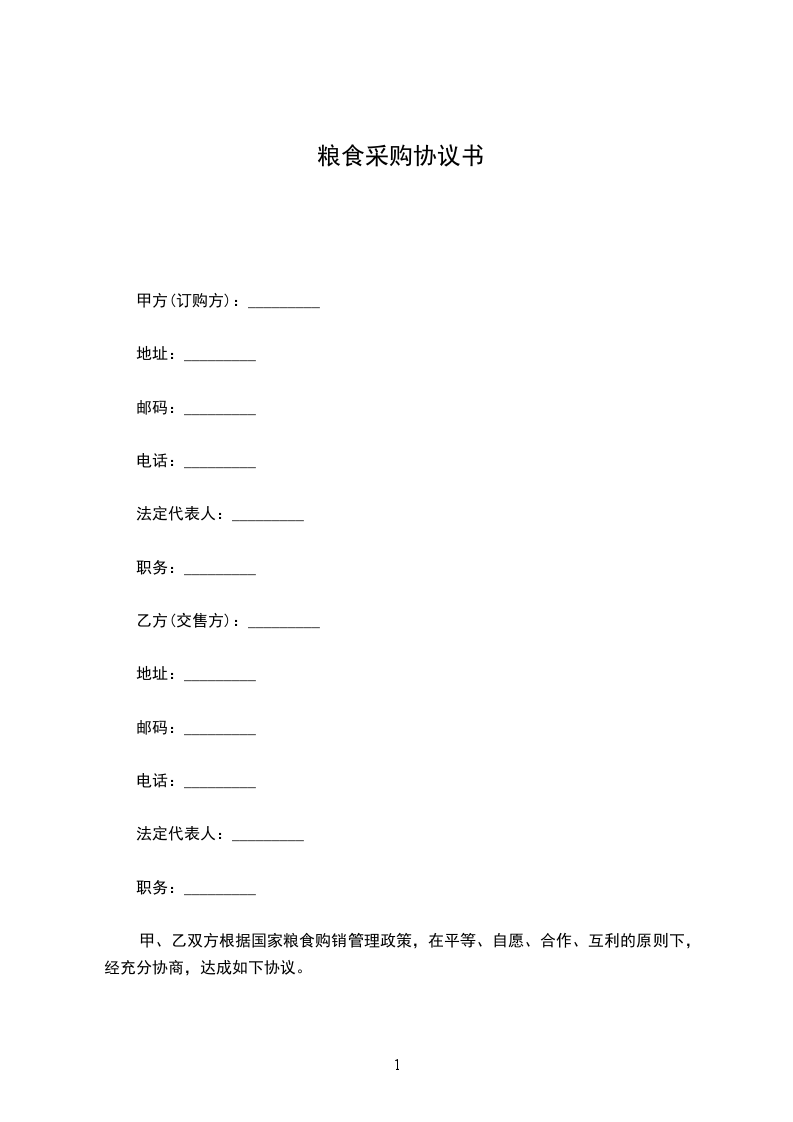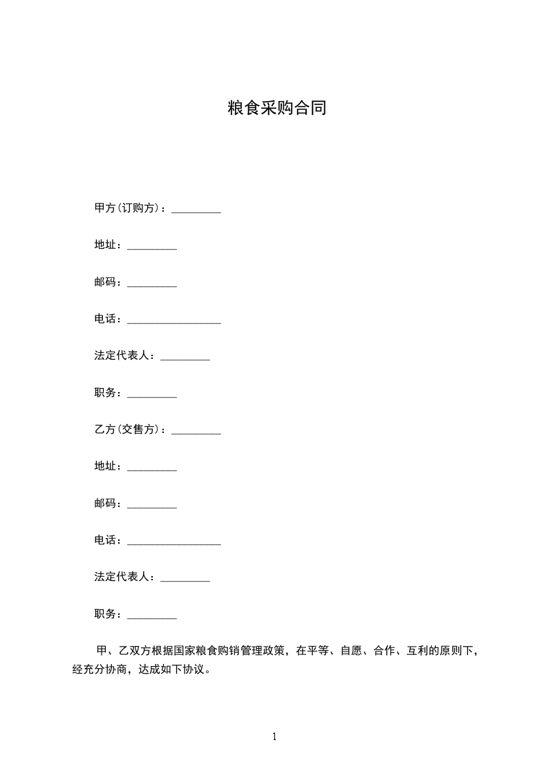 一、甲方向乙方定购粮食_________公斤(_________市斤)。