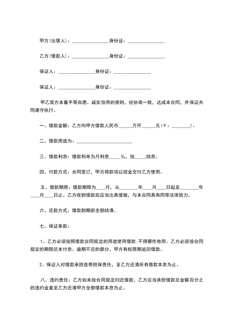 一、借款金额:乙方向甲方借款人民币______万仟______元(¥:________)。