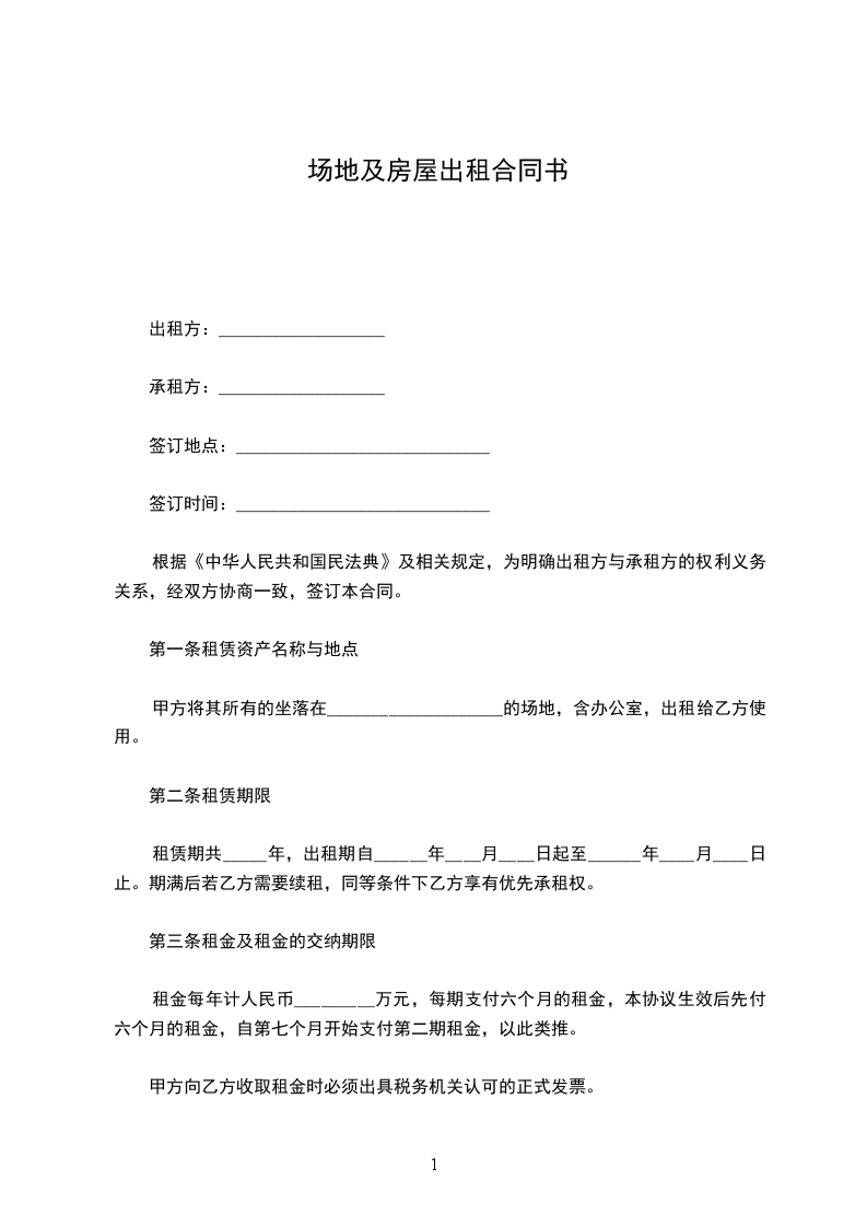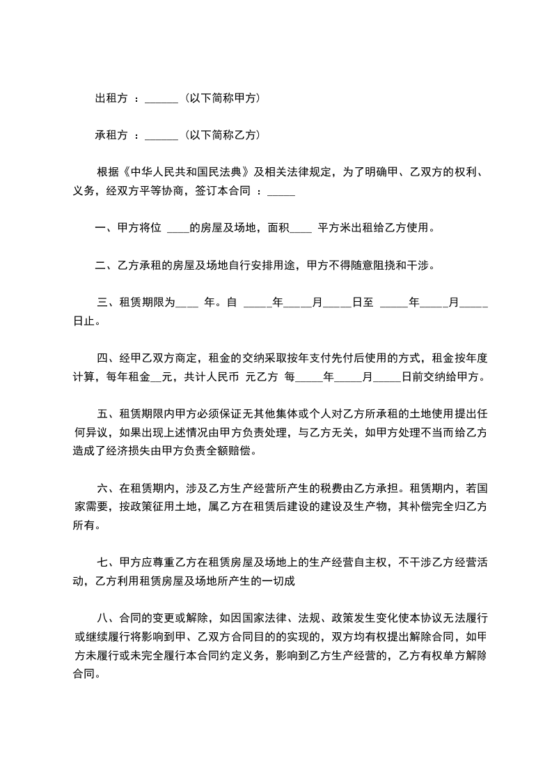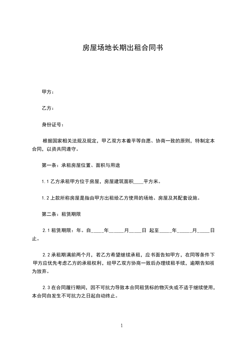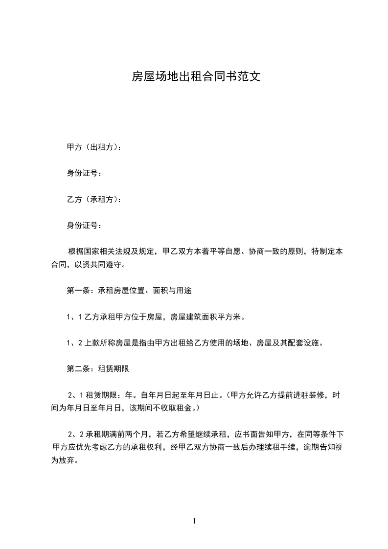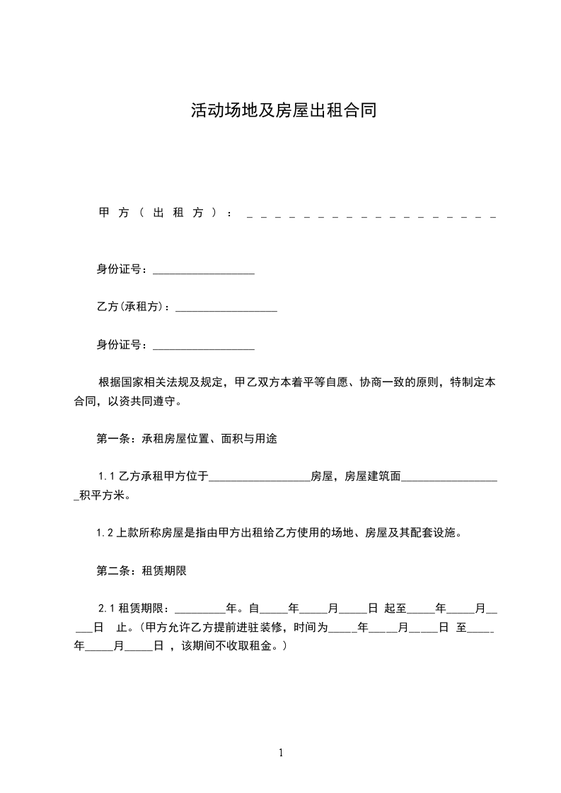 2、1租赁期限:年。自_____年_____月_____日起至_____年_____月_____日止。(甲方允许乙方提前进驻装修,时间为_____年_____月_____日至_____年_____月_____日,该期间不收取租金。)