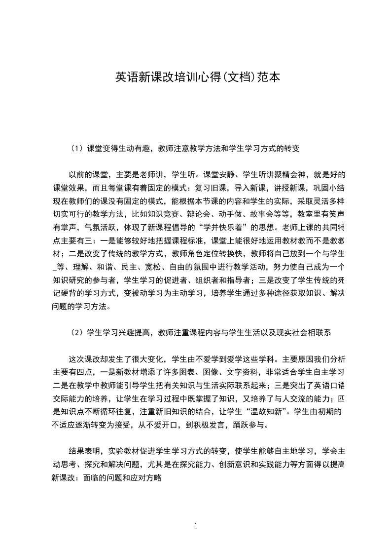 通过此次新课改学习,我学到了不少知识,也得到了不少的收获:先将我的收获和体会总结如下: