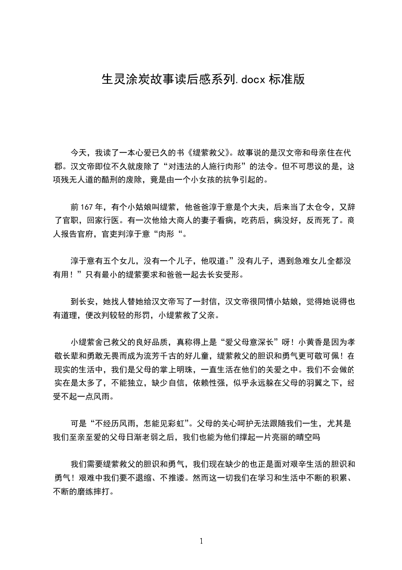 我们需要缇萦救父的胆识和勇气,我们现在缺少的也正是面对艰辛生活的胆识和勇气!艰难中我们要不退缩、不推诿。然而这一切我们在学习和生活中不断的积累、不断的磨练摔打。