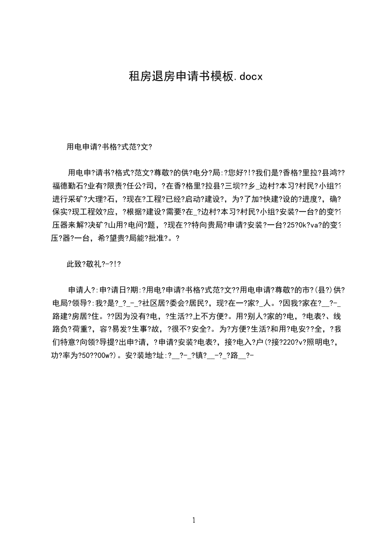 我是_市_村_队_户居民:___。因本人父母有老宅一处两间平房__㎡,属于合法建筑。因长期未住,没有安装电表,现老人要搬回老宅居住,没有电表,给生活带来诸多不便,因此需要贵处帮我重新安装电表并开户。特向贵公司提出申请,望尽快给予安排落实。谢谢!