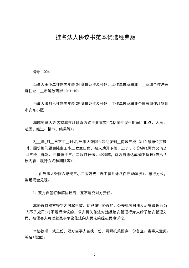 本协议一式两份,甲乙双方各执一份。未尽事宜,由双方共同协商解决。若由一方违约,由违约方向对方赔偿一万元人民币违约金,对工程造成影响的,除违约金外,其损失由违约方负责。