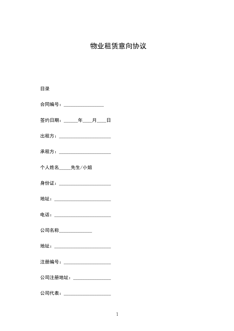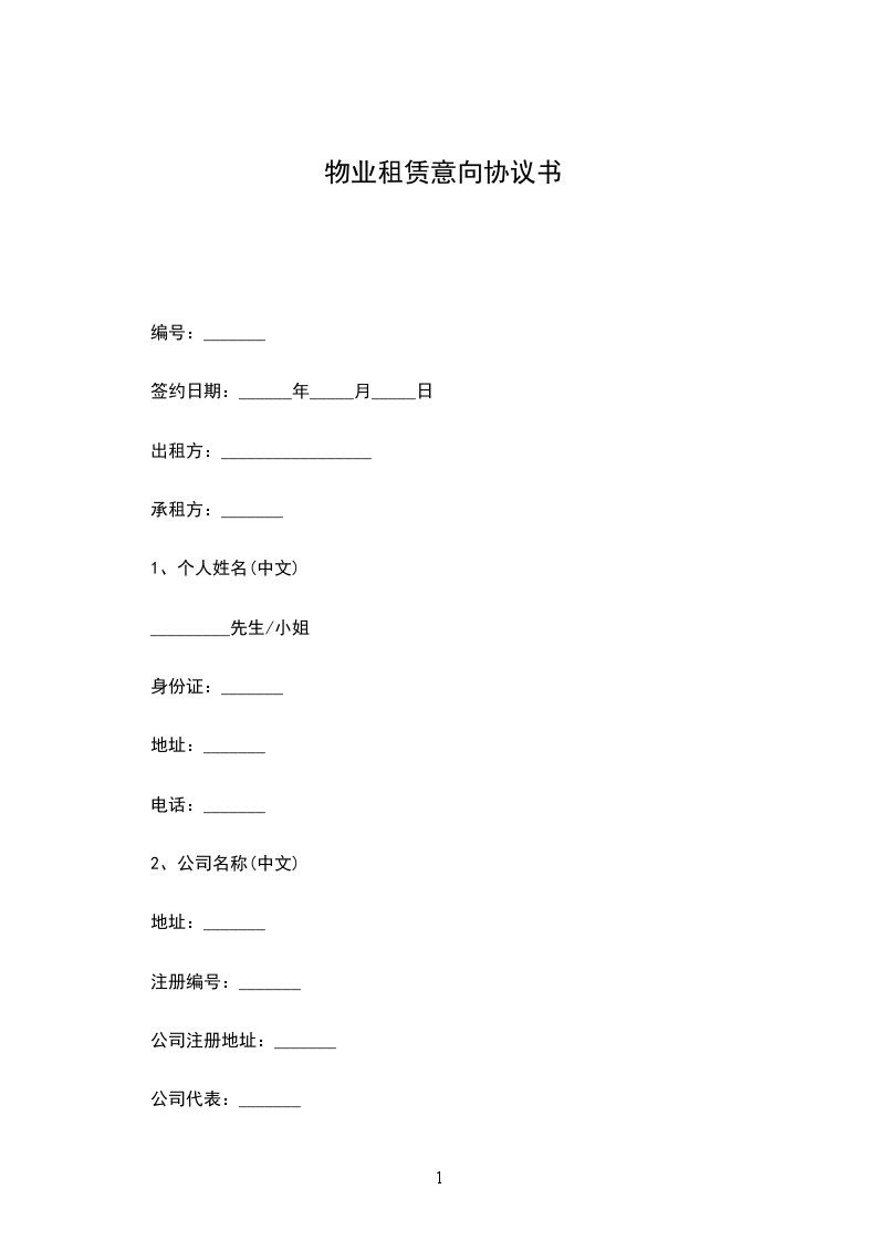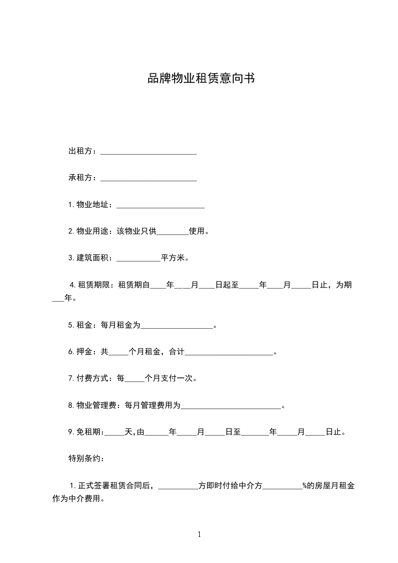 一、甲方已确认丙方物业为乙方介绍 ,甲方与丙方签订承租意向书,同时向丙方交纳______元订金,并确定起租日期及承租年限。