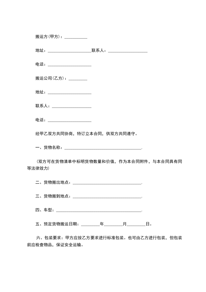 六、包装要求:甲方应按乙方要求进行标准包装。也可由乙方进行包装,但包装前应检查物品,保证安全运输。