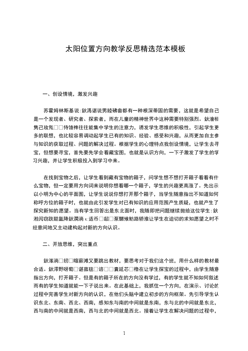 2、本节课的教学评价方式上略显单一。我对学生的评价多一些,但缺少学生和学生之间的评价,如果在判断方向这一环节中,可以组织学生之间进行评价,把评价的权力交给学生,及时激励学生。