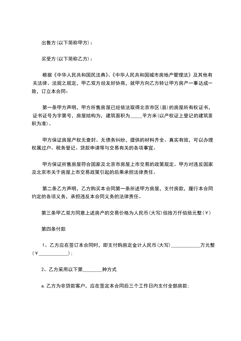 乙方于本合同签订之日向甲方支付定金___元整,大写: , 日内交付 万元(大写 ),余款 元(大写 )在房屋过户手续办理完毕之日支付。