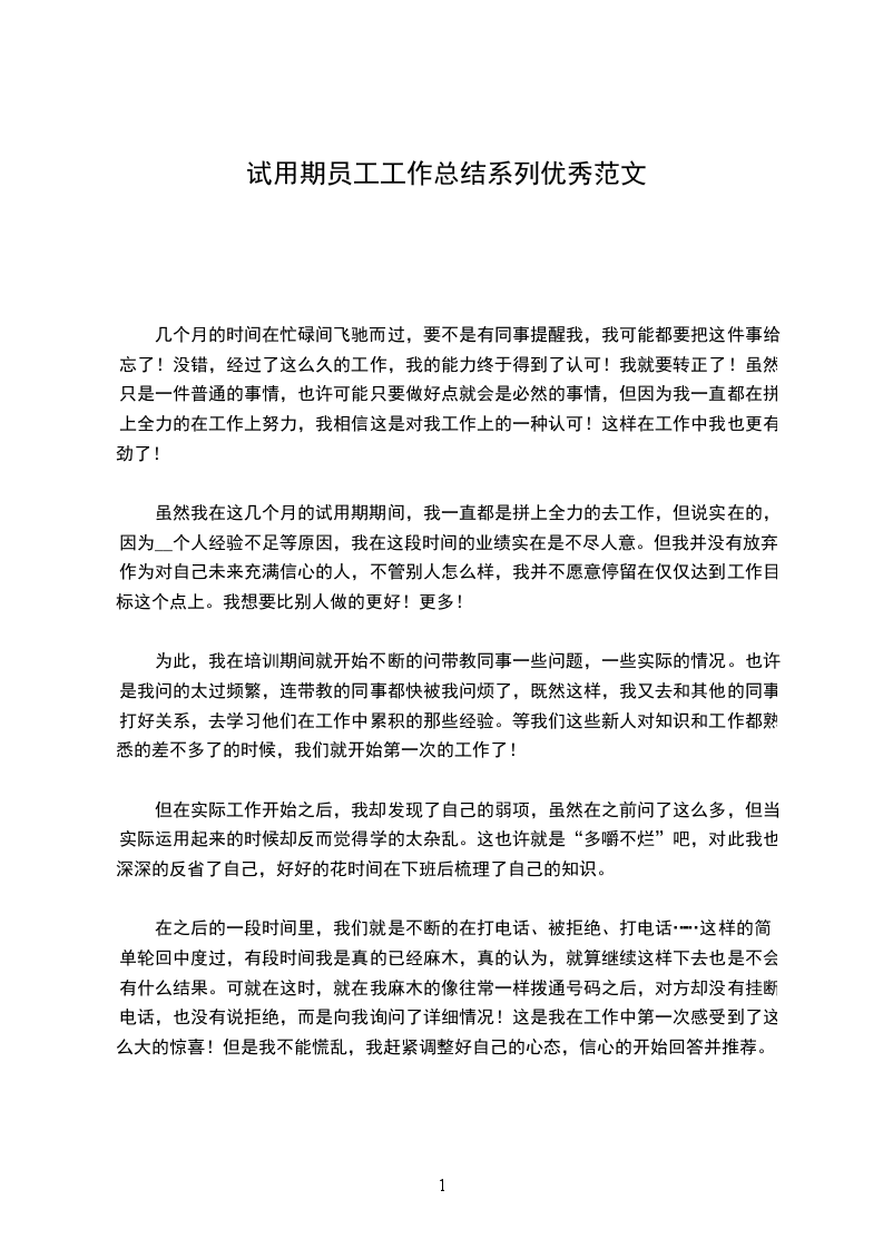 虽然我在这几个月的试用期期间,我一直都是拼上全力的去工作,但说实在的,因为__个人经验不足等原因,我在这段时间的业绩实在是不尽人意。但我并没有放弃!作为对自己未来充满信心的人,不管别人怎么样,我并不愿意停留在仅仅达到工作目标这个点上。我想要比别人做的更好!更多!