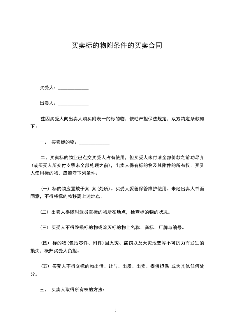一、 买卖标的物:_____________