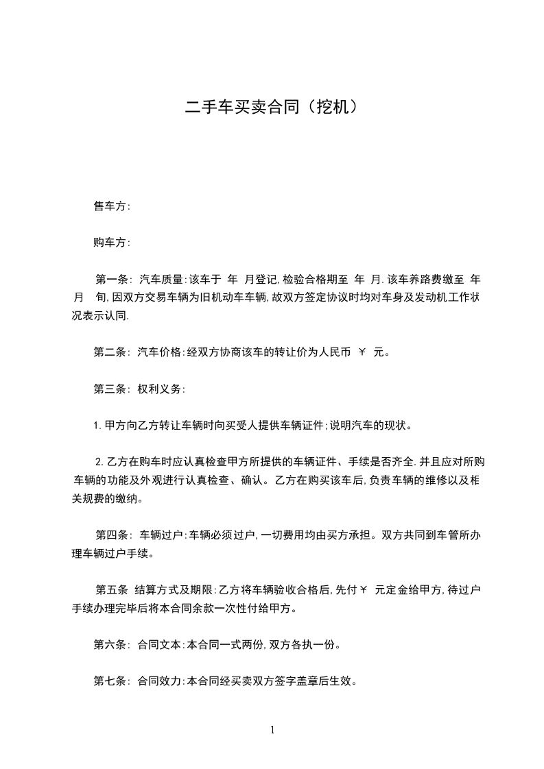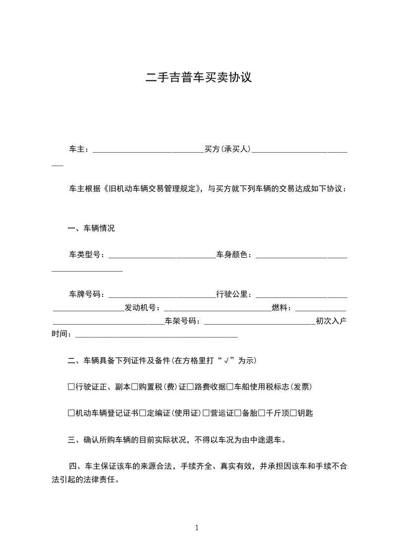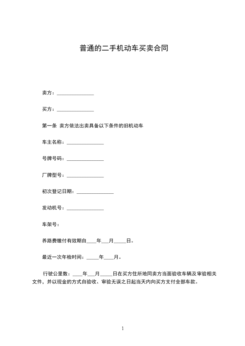 第一条 卖方依法出卖具备以下条件的旧机动车