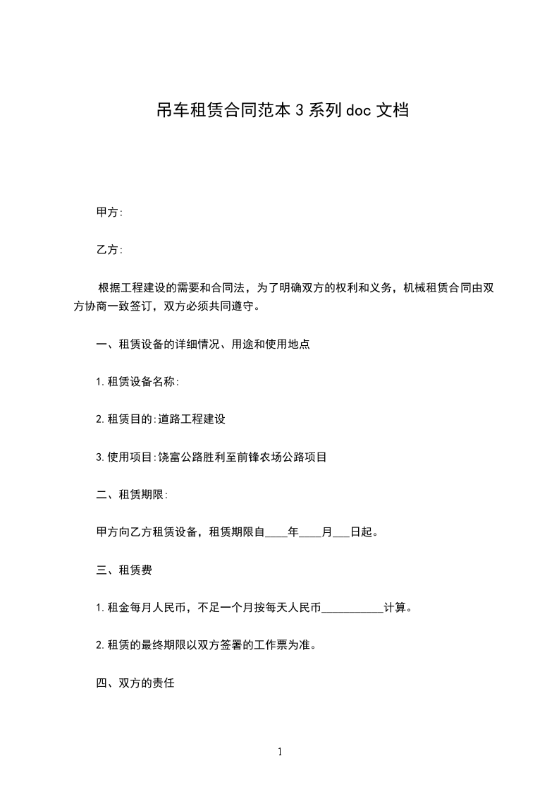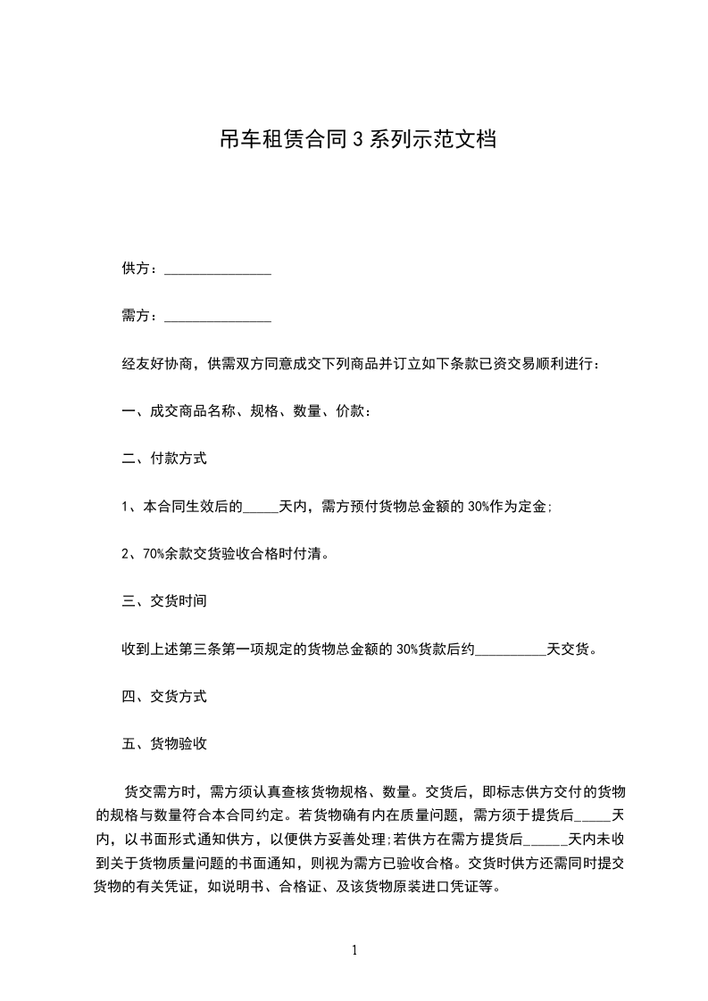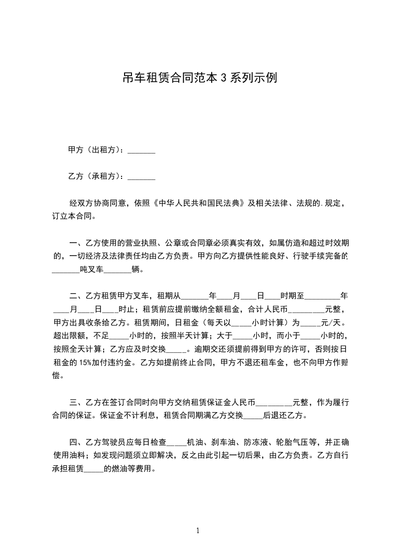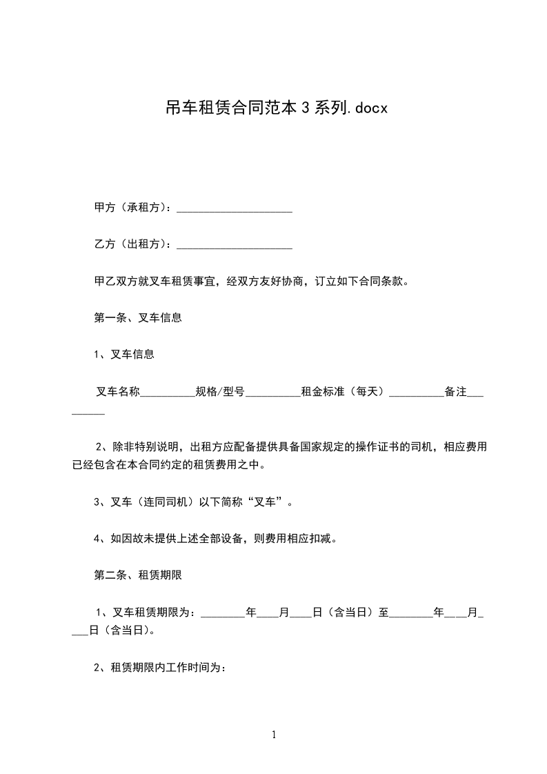一、乙方使用的营业执照、公章或合同章必须真实有效,如属仿造和超过时效期的,一切经济及法律责任均由乙方负责。甲方向乙方提供性能良好、行驶手续完备的_______吨叉车_______辆。