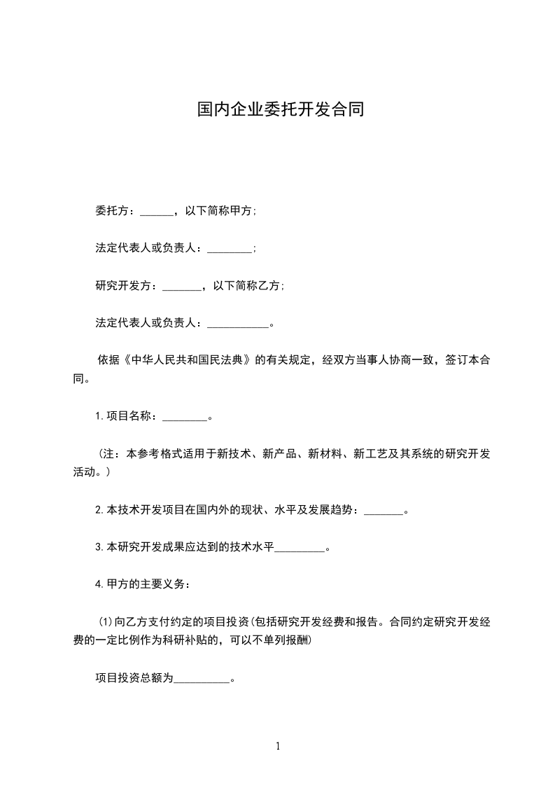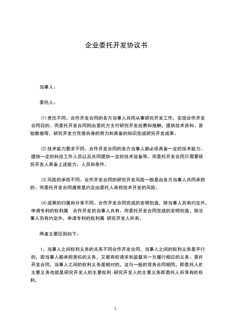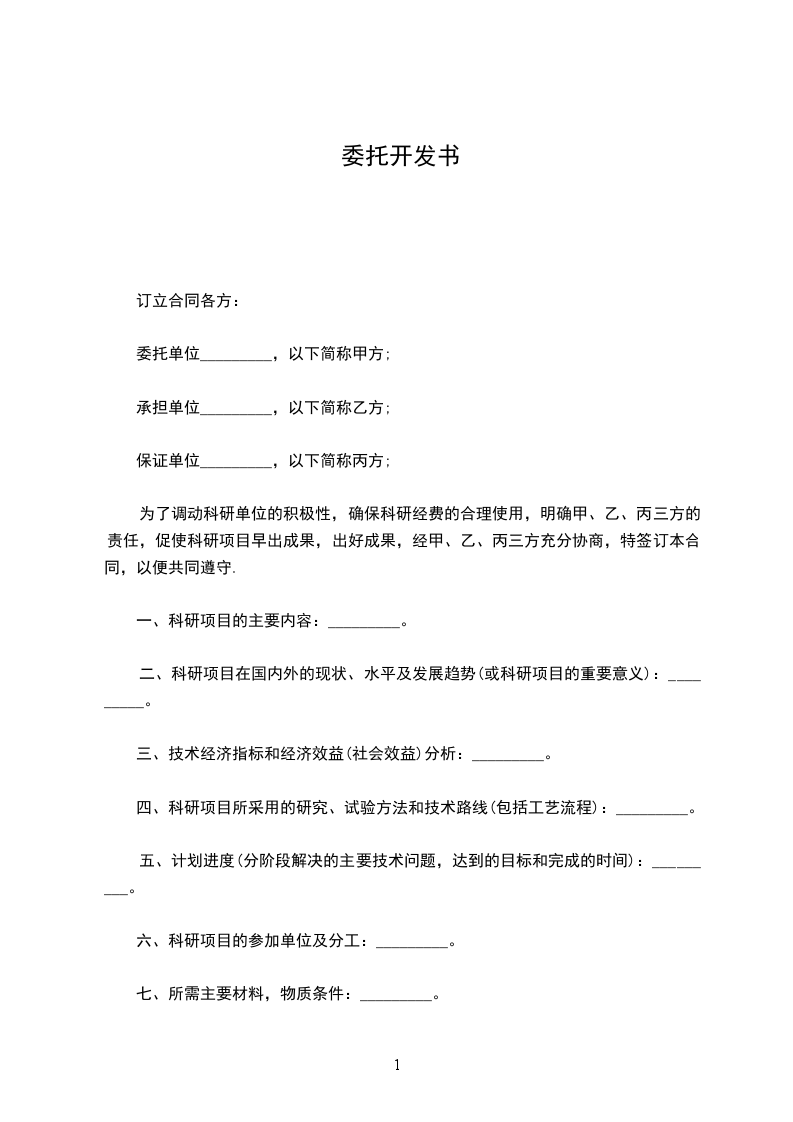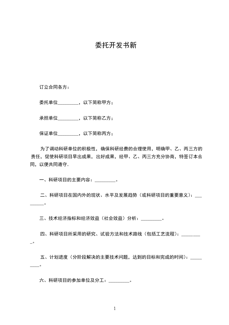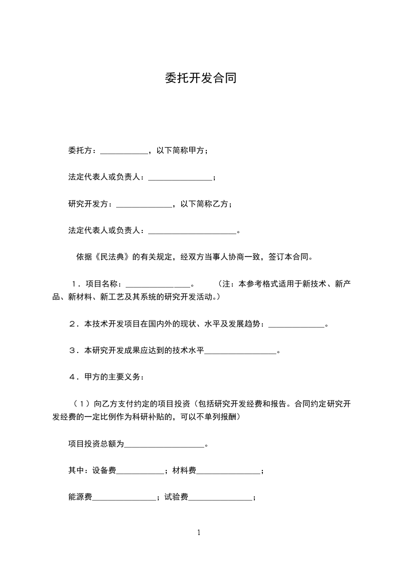1.1 本合同的委托开发项目名称为:(本合同所涉及到的技术标的项目的名称)