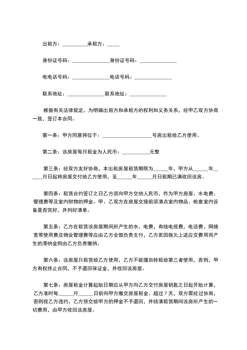 2.承租方的违约责任_______________________。