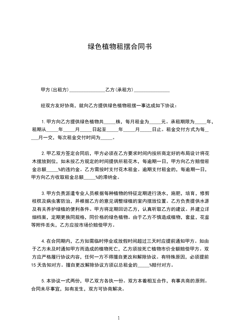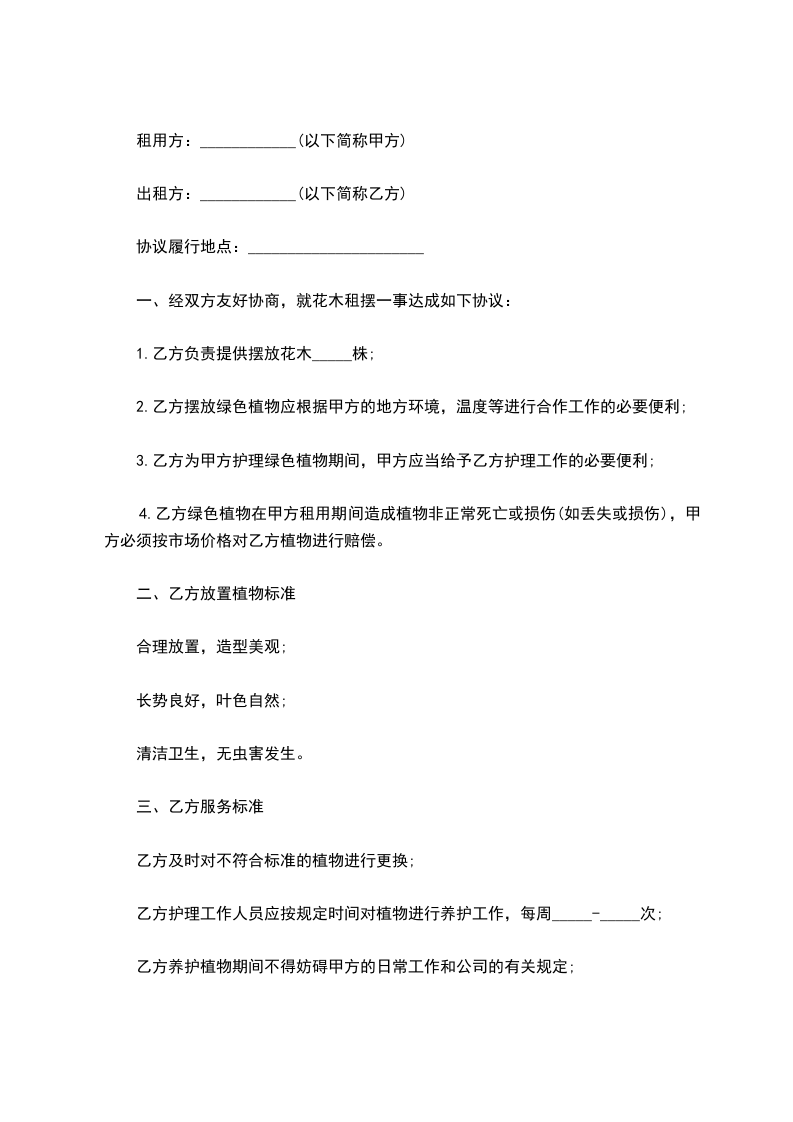 经双方友好协商,就向乙方提供绿色植物租摆一事达成如下协议: