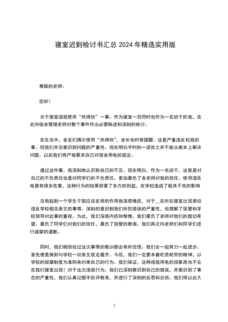 关于寝室违规使用“热得快”一事。作为寝室一员同时也作为一名班干的我,在此向宿舍管理老师对整个事件作出必要陈述和深刻的检讨。