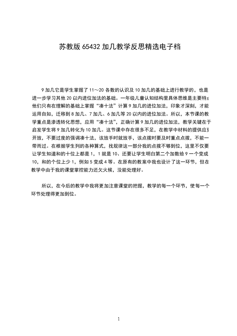 9加几它是学生掌握了11~20各数的认识及10加几的基础上进行教学的,也是进一步学习其他20以内进位加法的基础。一年级儿童认知结构里具体思维是主要特点,他们只有在理解的基础上掌握“凑十法”计算9加几的进位加法,印象才深刻,才能运用自如,迁移到8加几、7加几、6加几等20以内的进位加法。所以,本节课的教学重点是渗透转化思想,应用“凑十法”,正确计算9加几的进位加法,教学关键在于启发学生将9加几转化为10加几。这节课中存在很多不足,在教学中材料的提供应更开放,不要过度的强调凑十法,该放手时就放手,该点拨时要及时重点点拨,不能一带而过。在根据学生列的各种算式,找规律这一部分我的点拨不够到位,这里不仅要让学生知道和的十位上都是1,1就是10、还要让学生明白第二个加数给9一个变成10,和的个位上少1,例如5变成4等。在原有的教案中我也设计了这一环节,但在教学中由于我的课堂掌控能力还欠火候,没能处理好。