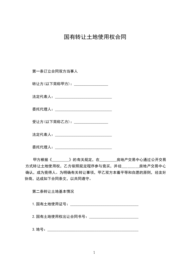 第一条根据《中华人民共和国土地法》之规定,原以划拨方式取得的土地使用权发生转让(出租;抵押),须签订土地使用权出让合同。乙方因出售(出租;抵押)房产(或部分房产),其使用范围内(或相应比例)的土地使用权随之转让(出租、抵押)。双方本着自愿、平等、有偿的原则,经过协商,订立本合同。