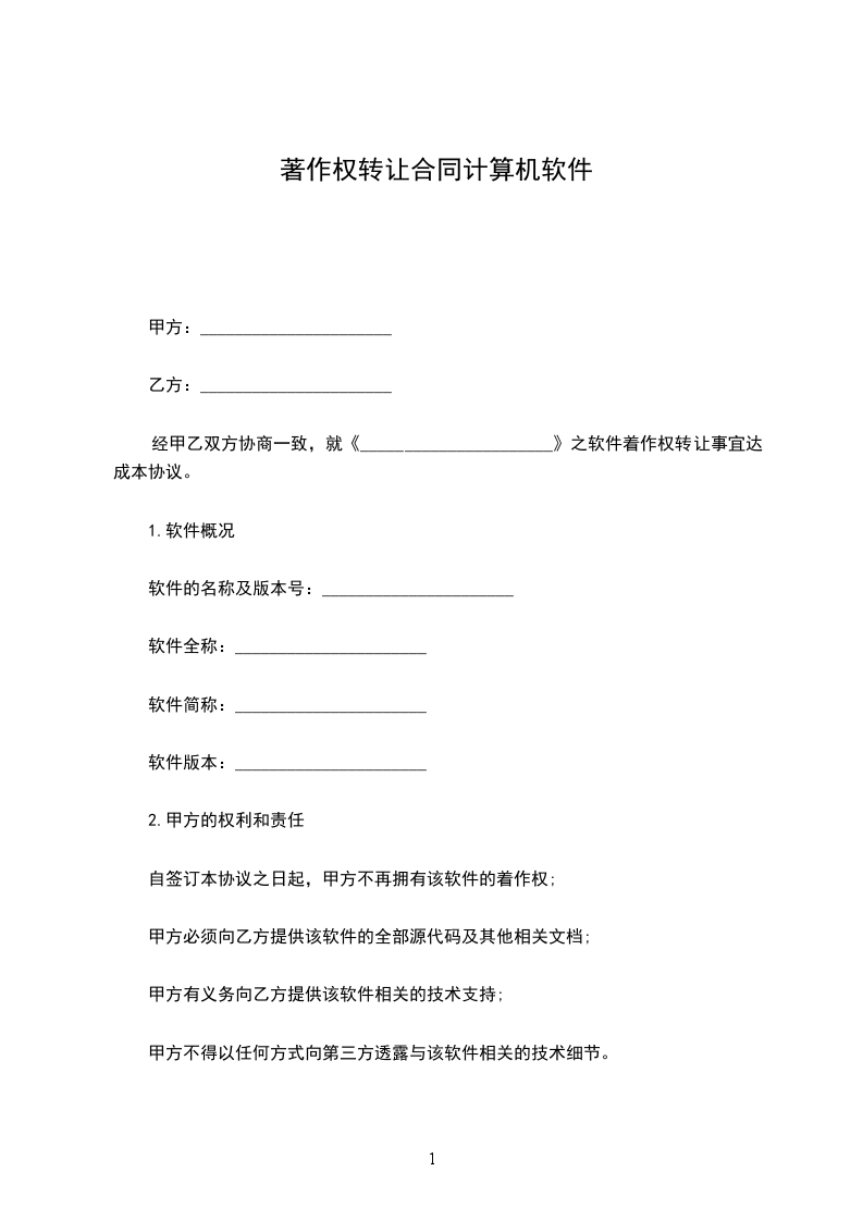 经甲乙双方协商一致,就《______________________》之软件着作权转让事宜达成本协议。