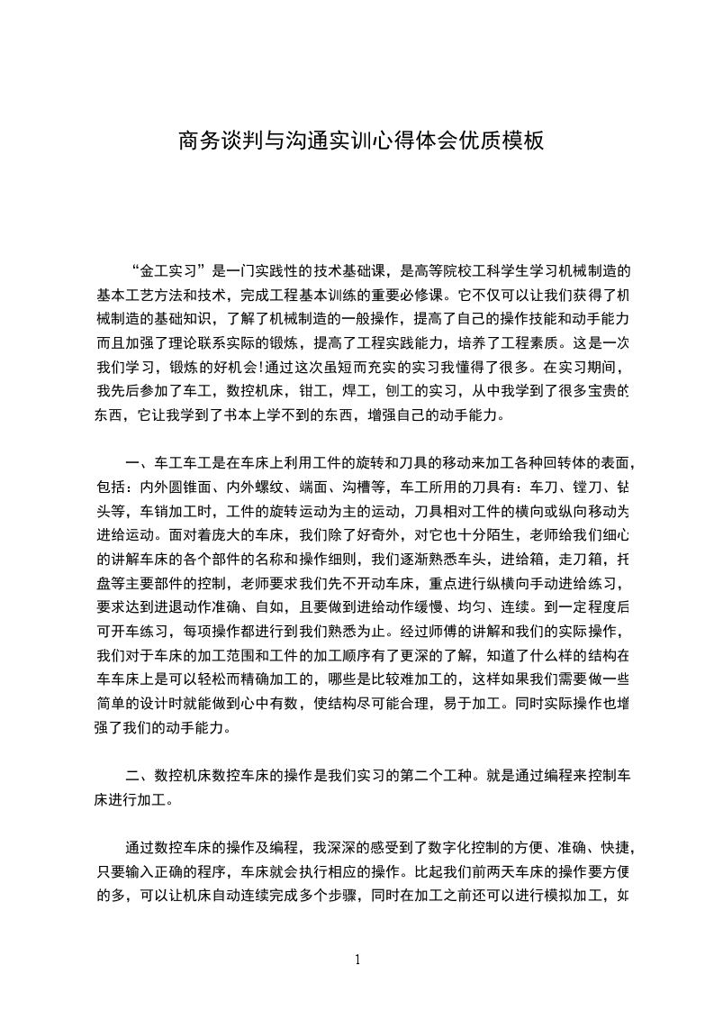 “金工实习”是一门实践性的技术基础课,是高等院校工科学生学习机械制造的基本工艺方法和技术,完成工程基本训练的重要必修课。它不仅可以让我们获得了机械制造的基础知识,了解了机械制造的一般操作,提高了自己的操作技能和动手能力,而且加强了理论联系实际的锻炼,提高了工程实践能力,培养了工程素质。这是一次我们学习,锻炼的好机会!通过这次虽短而充实的实习我懂得了很多。在实习期间,我先后参加了车工,数控机床,钳工,焊工,刨工的实习,从中我学到了很多宝贵的东西,它让我学到了书本上学不到的东西,增强自己的动手能力。