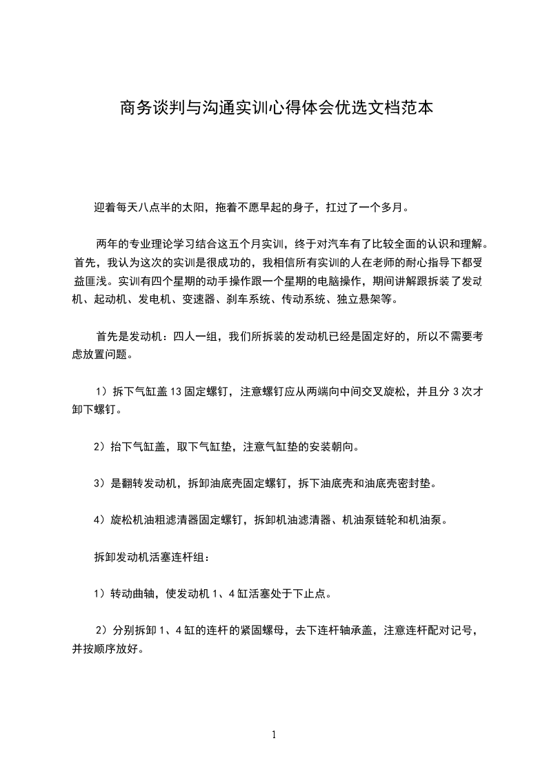 一、车工车工是在车床上利用工件的旋转和刀具的移动来加工各种回转体的表面,包括:内外圆锥面、内外螺纹、端面、沟槽等,车工所用的刀具有:车刀、镗刀、钻头等,车销加工时,工件的旋转运动为主的运动,刀具相对工件的横向或纵向移动为进给运动。面对着庞大的车床,我们除了好奇外,对它也十分陌生,老师给我们细心的讲解车床的各个部件的名称和操作细则,我们逐渐熟悉车头,进给箱,走刀箱,托盘等主要部件的控制,老师要求我们先不开动车床,重点进行纵横向手动进给练习,要求达到进退动作准确、自如,且要做到进给动作缓慢、均匀、连续。到一定程度后可开车练习,每项操作都进行到我们熟悉为止。经过师傅的讲解和我们的实际操作,我们对于车床的加工范围和工件的加工顺序有了更深的了解,知道了什么样的结构在车车床上是可以轻松而精确加工的,哪些是比较难加工的,这样如果我们需要做一些简单的设计时就能做到心中有数,使结构尽可能合理,易于加工。同时实际操作也增强了我们的动手能力。