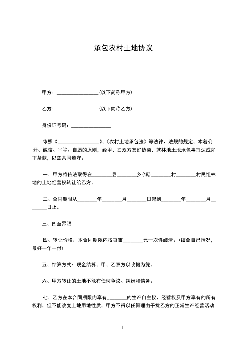 第二条承包期限为伍年,即从年月___日至年____月____日止。