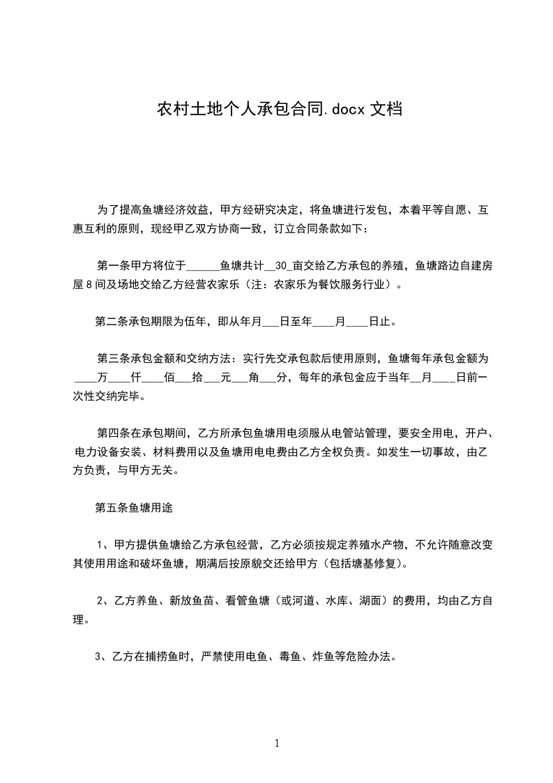 第三条承包金额和交纳方法:实行先交承包款后使用原则,鱼塘每年承包金额为____万____仟____佰___拾___元___角___分,每年的承包金应于当年__月____日前一次性交纳完毕。