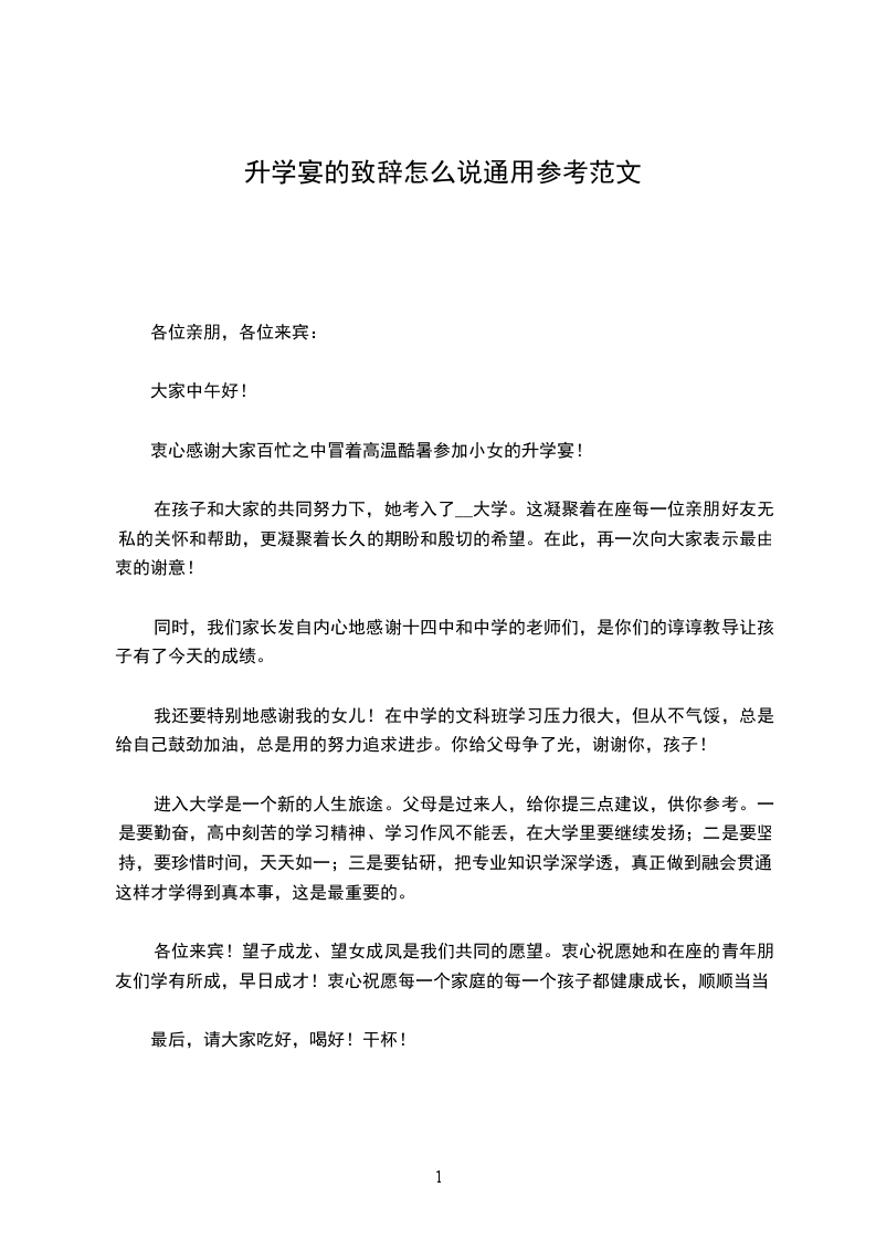 衷心感谢大家百忙之中冒着高温酷暑参加小女的升学宴!