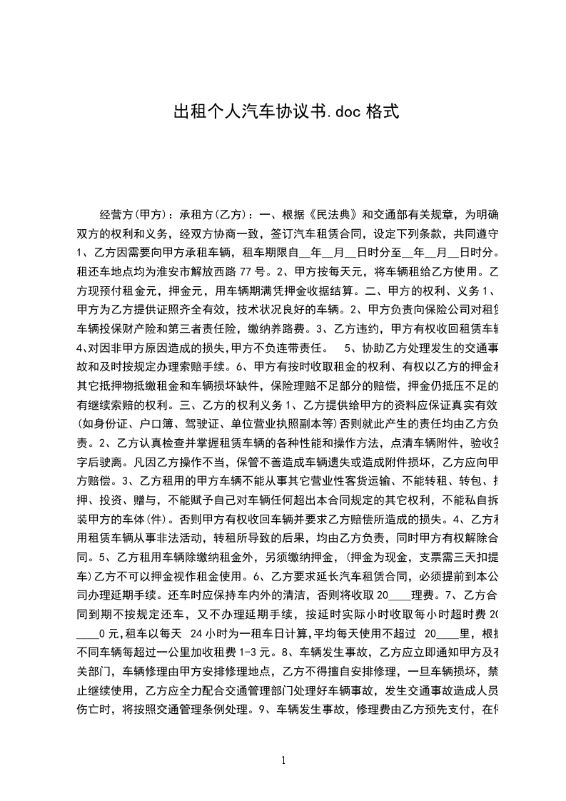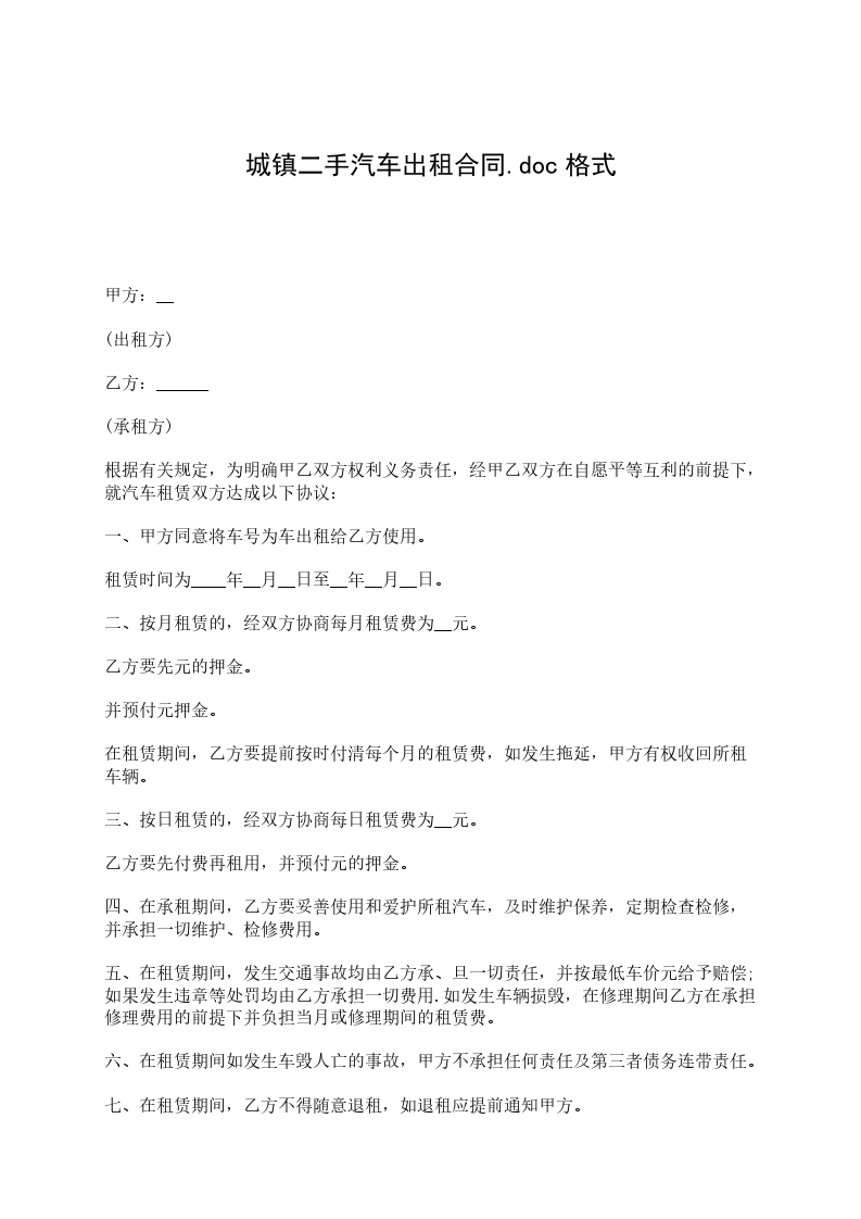 2、租用甲方__________________型、颜色为______________小轿车(面包)车辆,所租用车辆的所有权为甲方,乙方只有使用权。