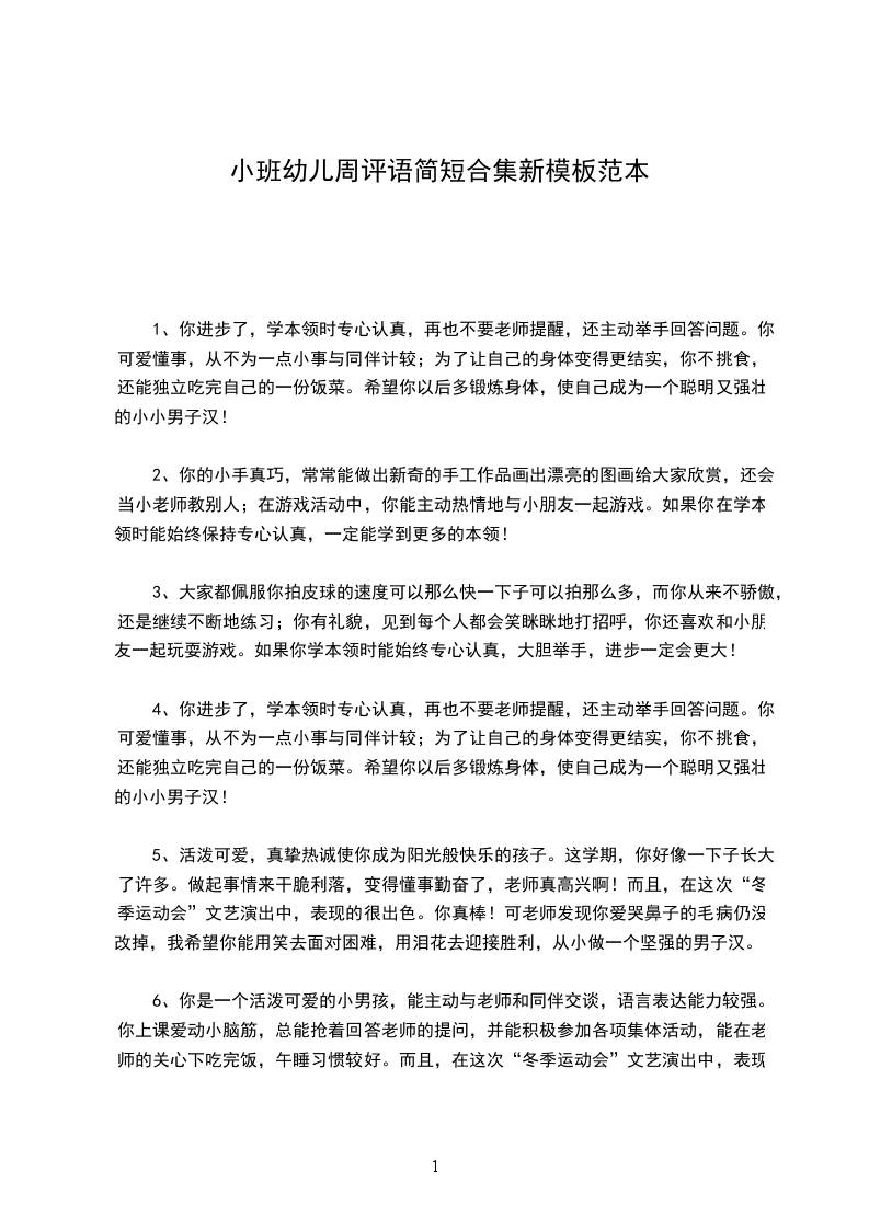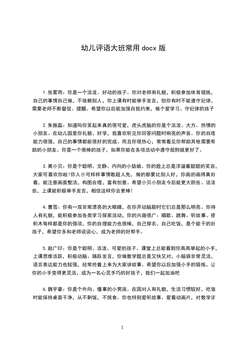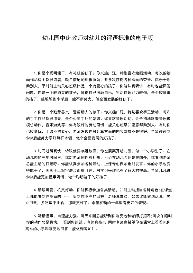 5、宝贝希望你能改正缺点,发扬优点。老师和爸爸妈妈相信你能做好,也期待你有更大的进步。