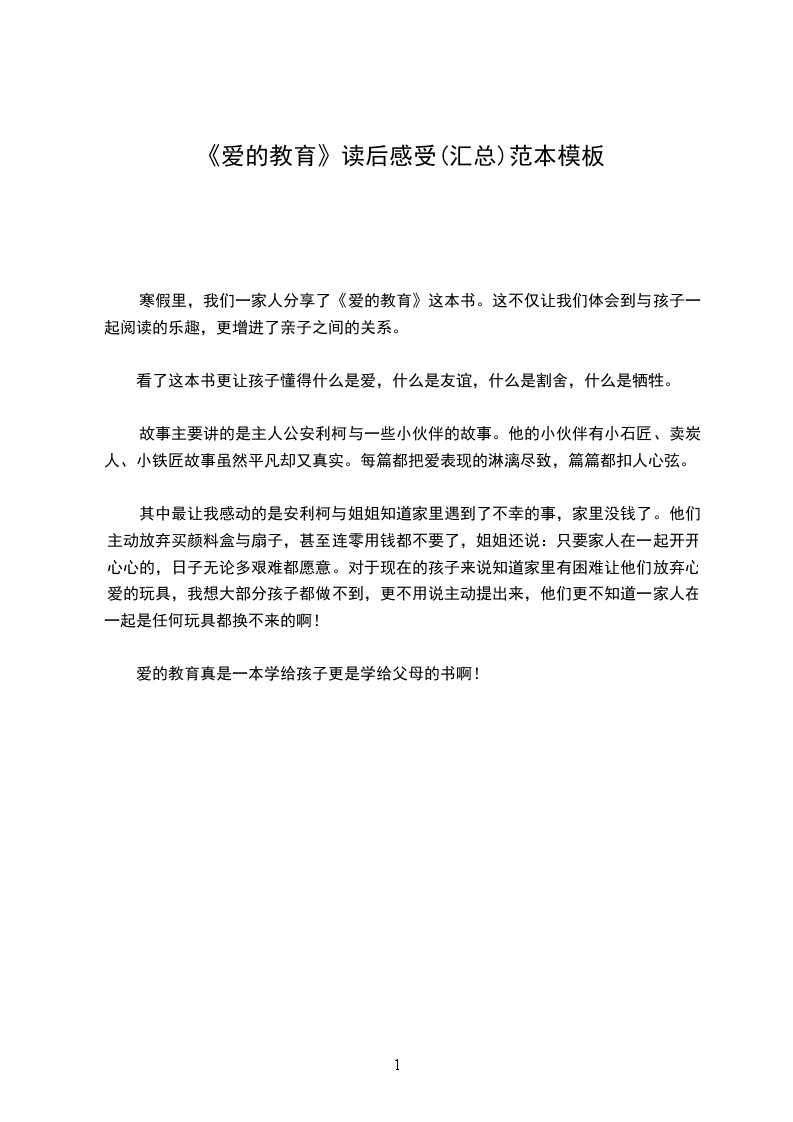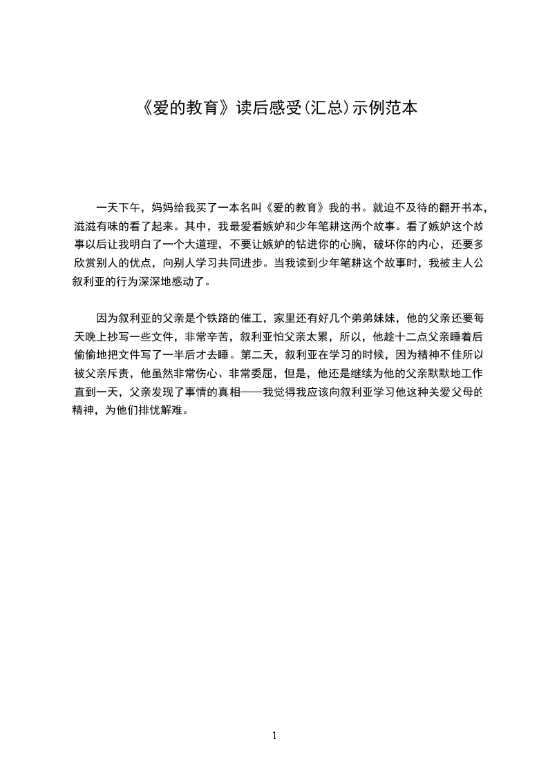 一天下午,妈妈给我买了一本名叫《爱的教育》我的书。就迫不及待的翻开书本,滋滋有味的看了起来。其中,我最爱看嫉妒和少年笔耕这两个故事。看了嫉妒这个故事以后让我明白了一个大道理,不要让嫉妒的钻进你的心胸,破坏你的内心,还要多欣赏别人的优点,向别人学习共同进步。当我读到少年笔耕这个故事时,我被主人公叙利亚的行为深深地感动了。