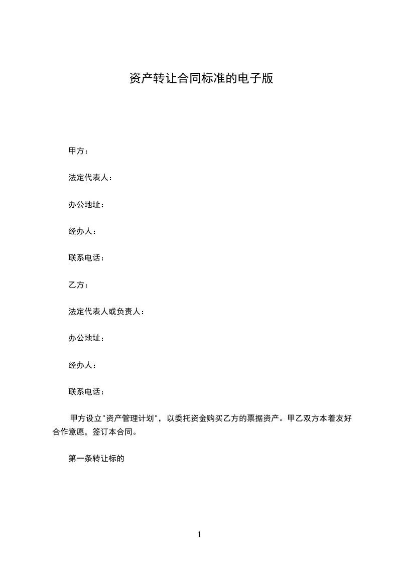 1.1本合同项下乙方向甲方管理的资产管理计划转让标的为乙方依据本合同附件《票据资产转让清单》所列票据项下的一切权益(以下简称"票据资产"),相关票据均为乙方已贴现(转贴现)的未到期的商业汇票(以下简称"标的票据")。